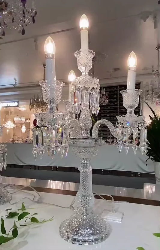 Luxury 2-Arm Candle Light Clear Crystal Table Lamp