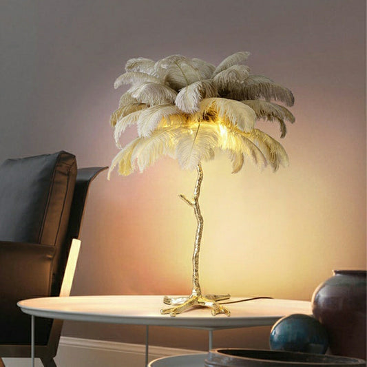Modern Designer Brass Ostrich Feather Table Lamp Decorative Pure Copper Bedside Light for Women's Bedroom