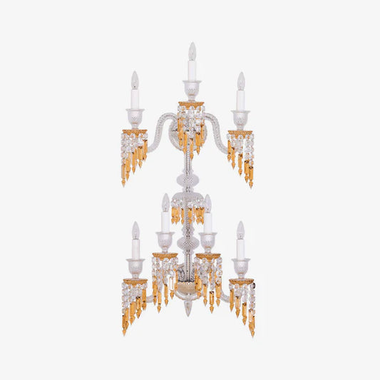 Luxury 7-Candle Yellow&Clear Crystal Wall Lamp