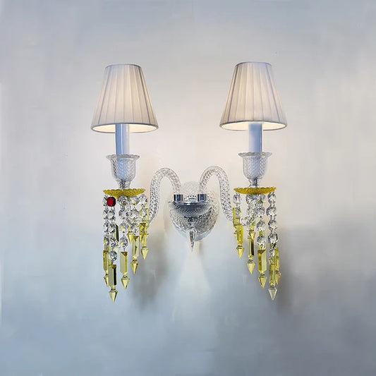 Luxury 2-Candle Yellow&Clear Crystal Wall Lamp
