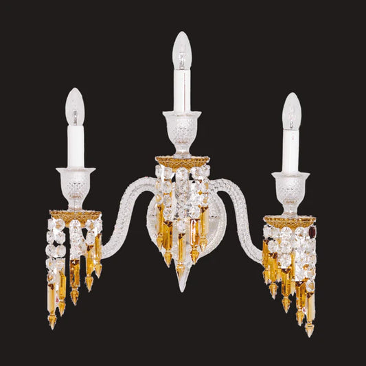Luxury 3-Candle Yellow&Clear Crystal Wall Lamp