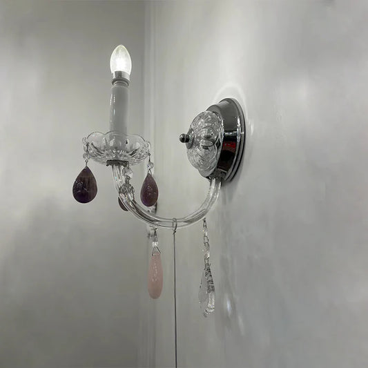 Luxury 1-Light Amethyst/ Rose/Clear Rock Crystal Wall Light