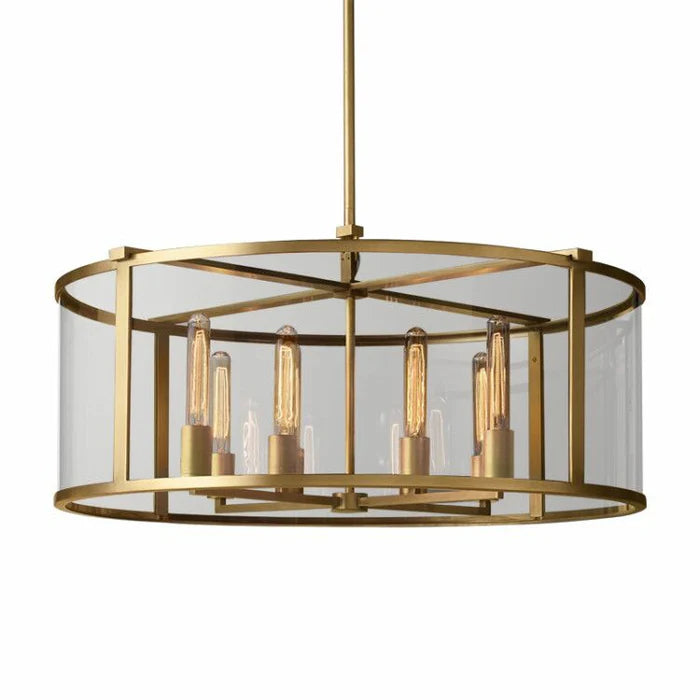Round Mid-Century Farmhouse Chandelier Brass Gold/ Black Finish Cage Style Taper Candle Pendant Lighting Fixture