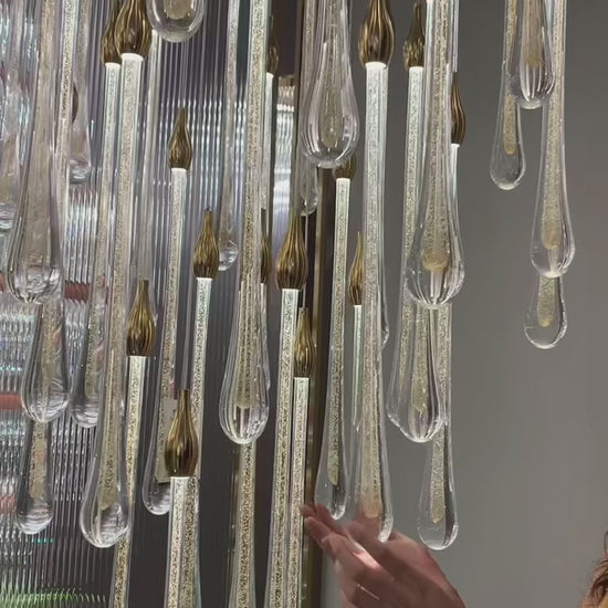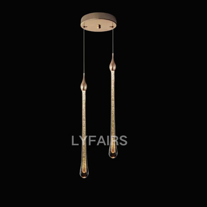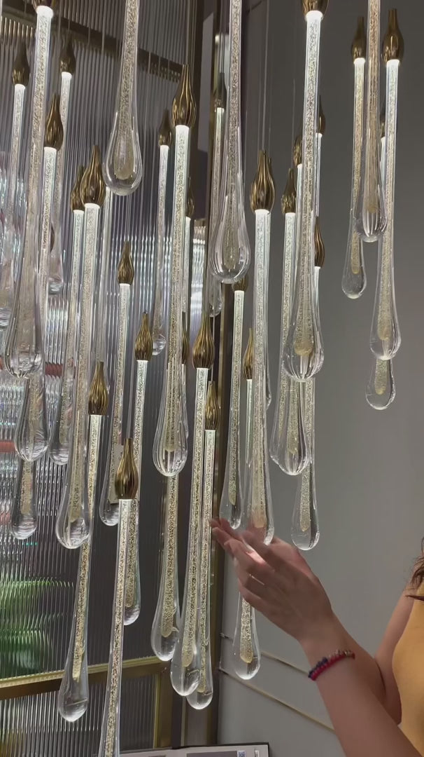 Foyer Glass Drops Pendant Chandelier Spiral Staircase High Ceiling Light Fixture In Gold Finish