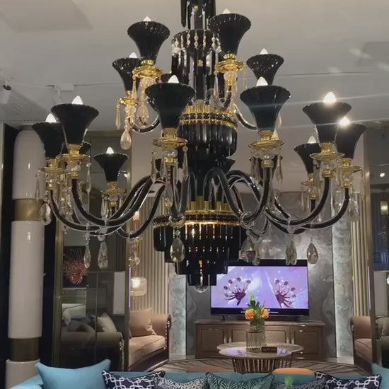 American Traditional Candle Branch Crystal Chandelier Black And Gold Luxury Living Room/Dining Room Light Fixture