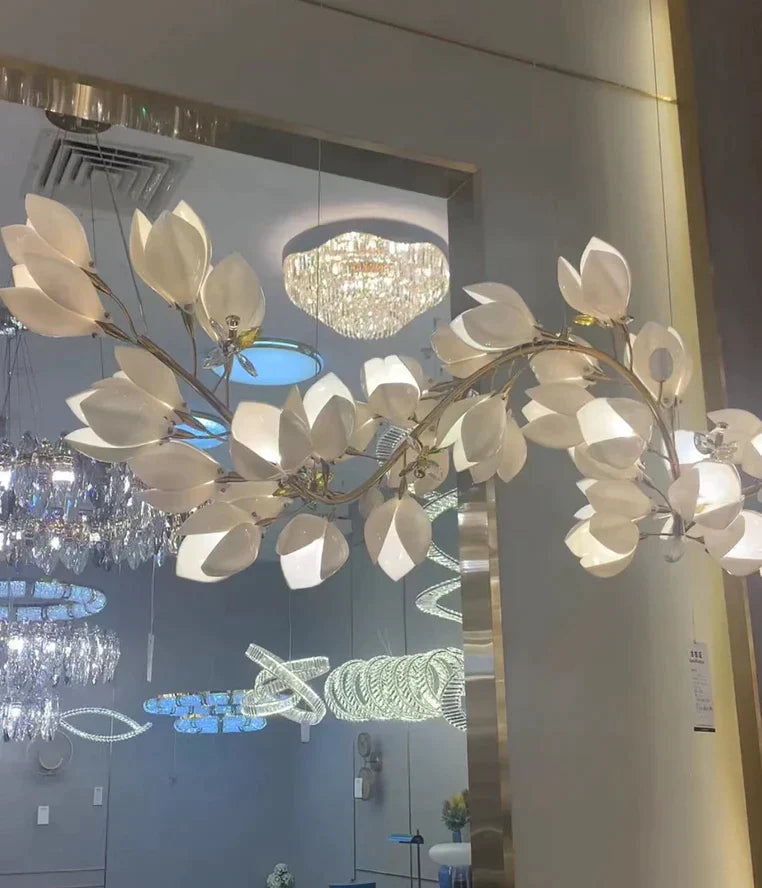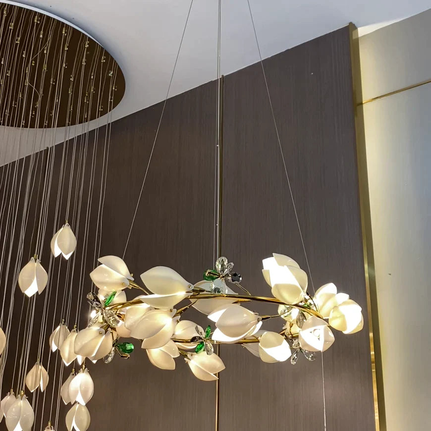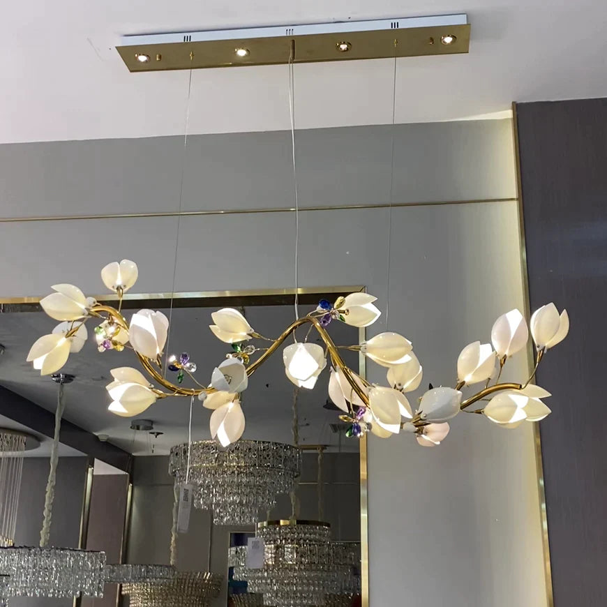 Art Design Creative Ceramic Magnolia Ring/Linear Chandelier for Bedroom/Living Room/Dining Room/Kitchen Island