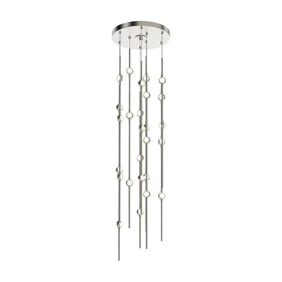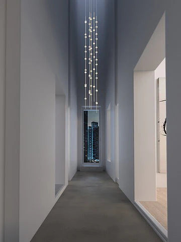 Illuminate your foyer with this art design creative constellation chandelier. Featuring linear strands of various lengths and LED hubs, it's a powerful source of luminescence with sizes and configurations to suit any space, along with customizable crystal facets or soft white lenses. Let your creativity shine.