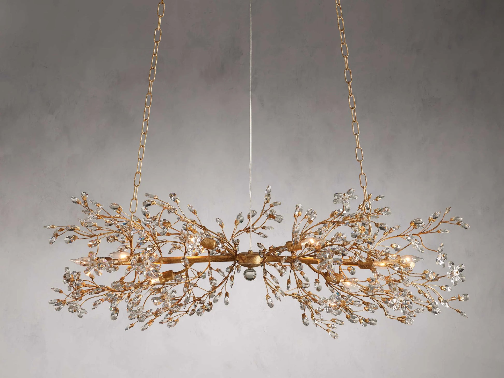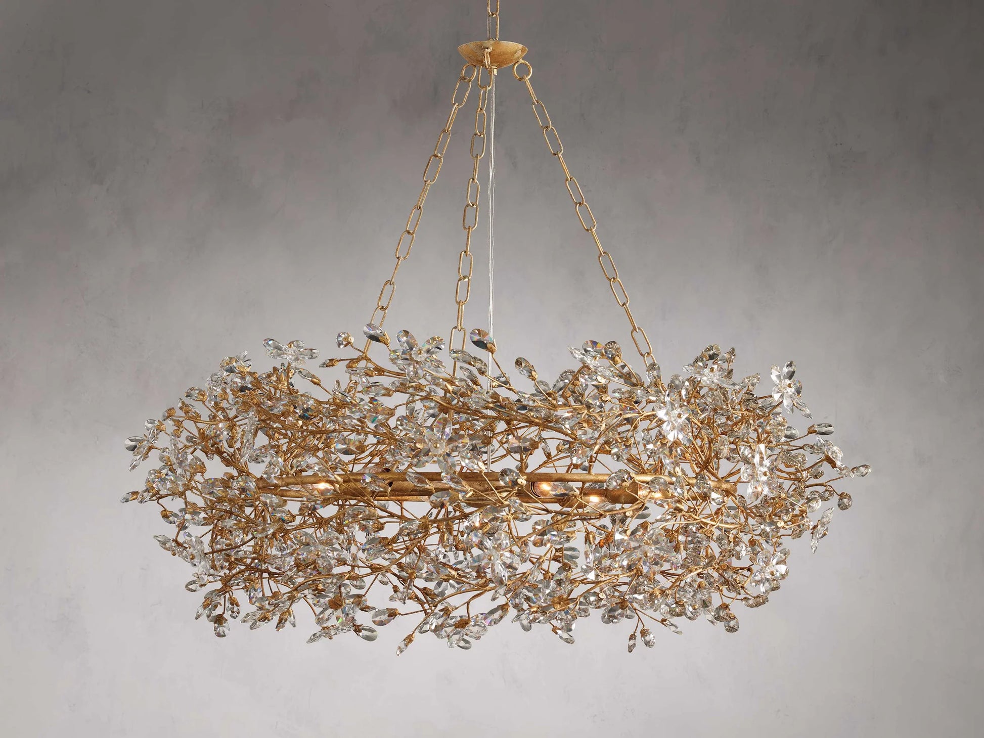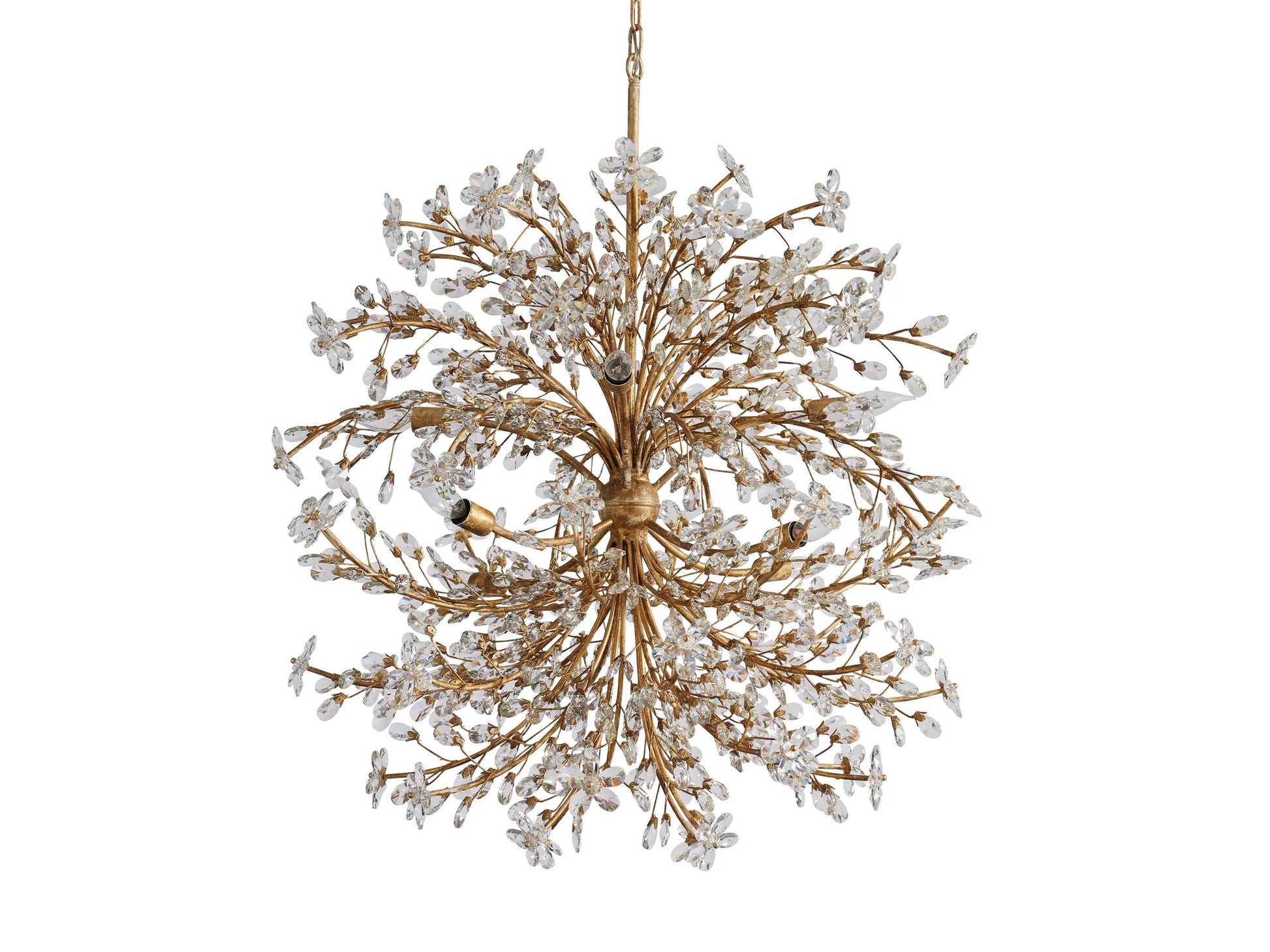 Our Art Design Crystal Florals Chandelier provides luxurious lighting for your living room, bedroom, dining room, or kitchen island. The solid iron construction and intricate crystal florals and drops brighten up any room with classic charm and allure. Hand-crafted by artisans, this chandelier is inspired by nature and celebrates top-quality craftsmanship.