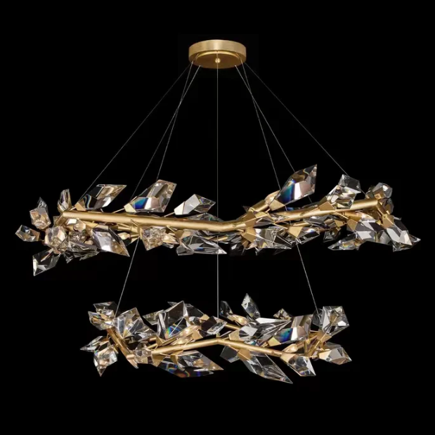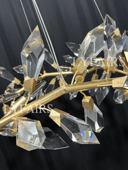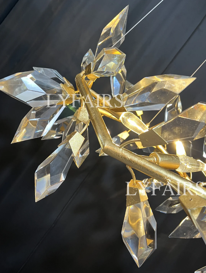 This sophisticated Art Handcrafted Crystal Chandelier will add stunning lighting to any living room, dining room, or bedroom. The modern branches with bold, hand-cut faceted crystal leaves lend a chic, nature-inspired look. Create a warm and inviting atmosphere with this stylish chandelier.