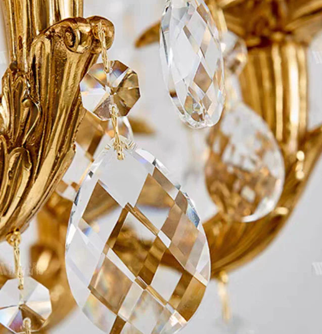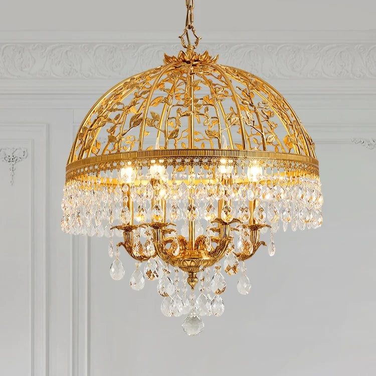 Baroque Luxury Full Copper Crystal Pendent Candle Chandelier for Entryway/Foyer/Dining Room