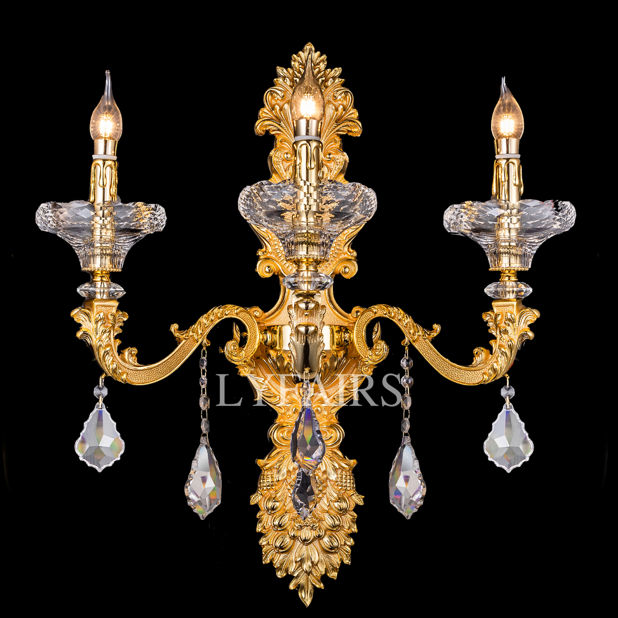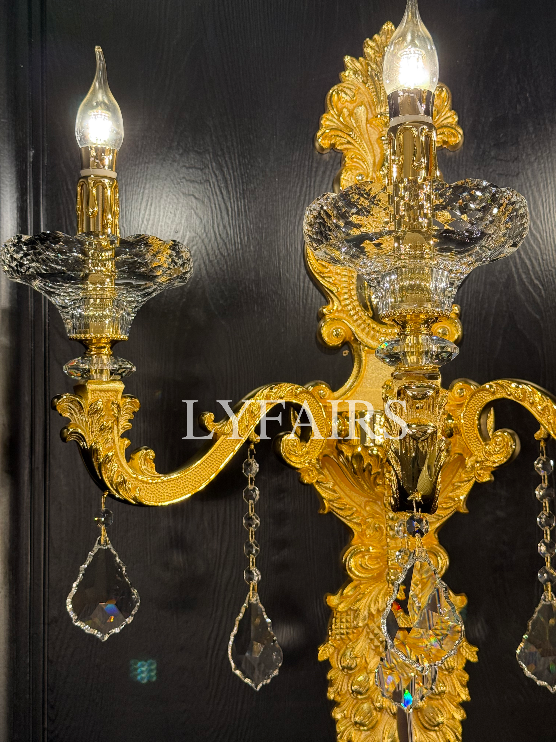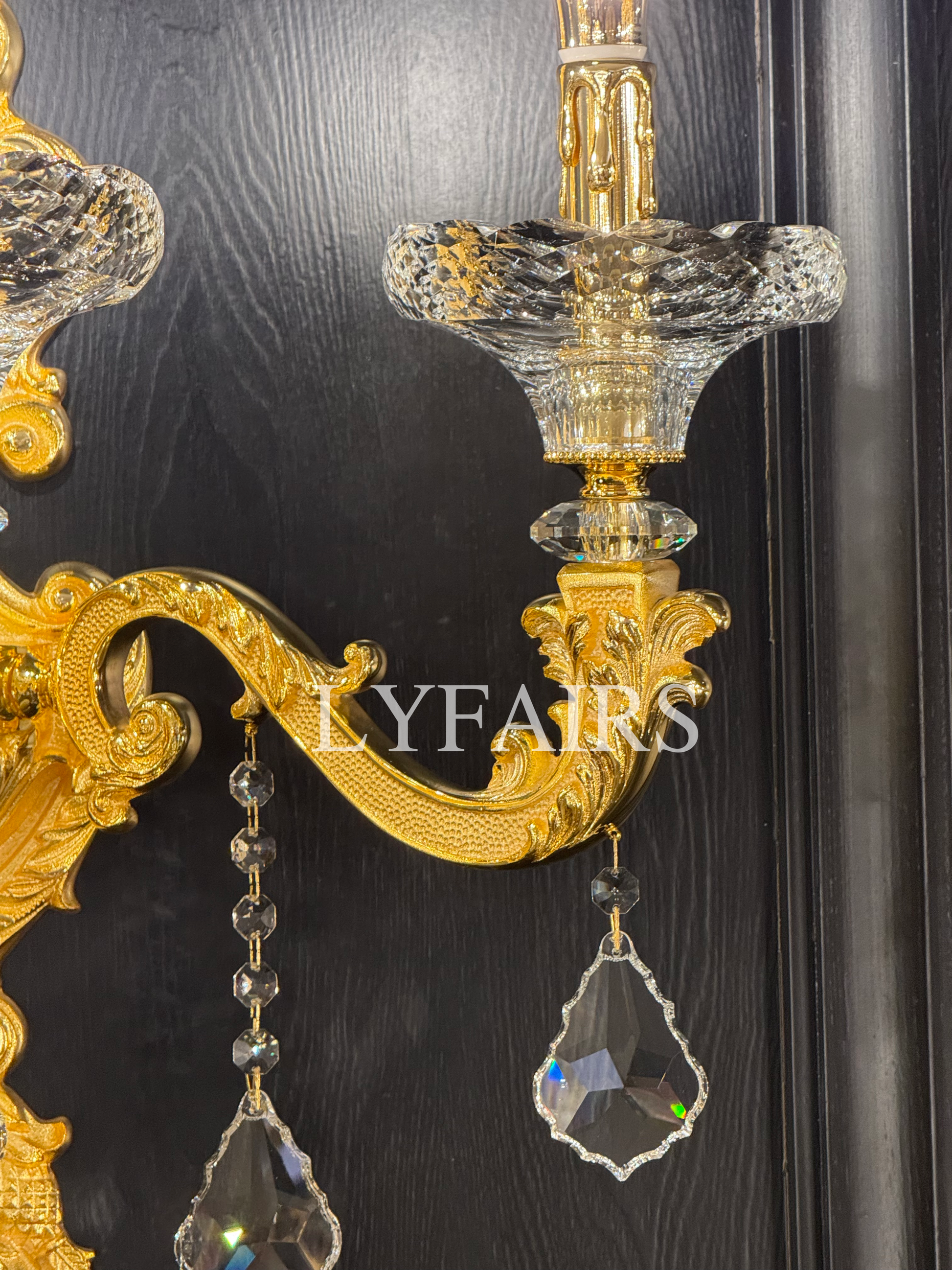 Baroque Revival Crystal Wall Lamp with Industrial 24K Gold Color