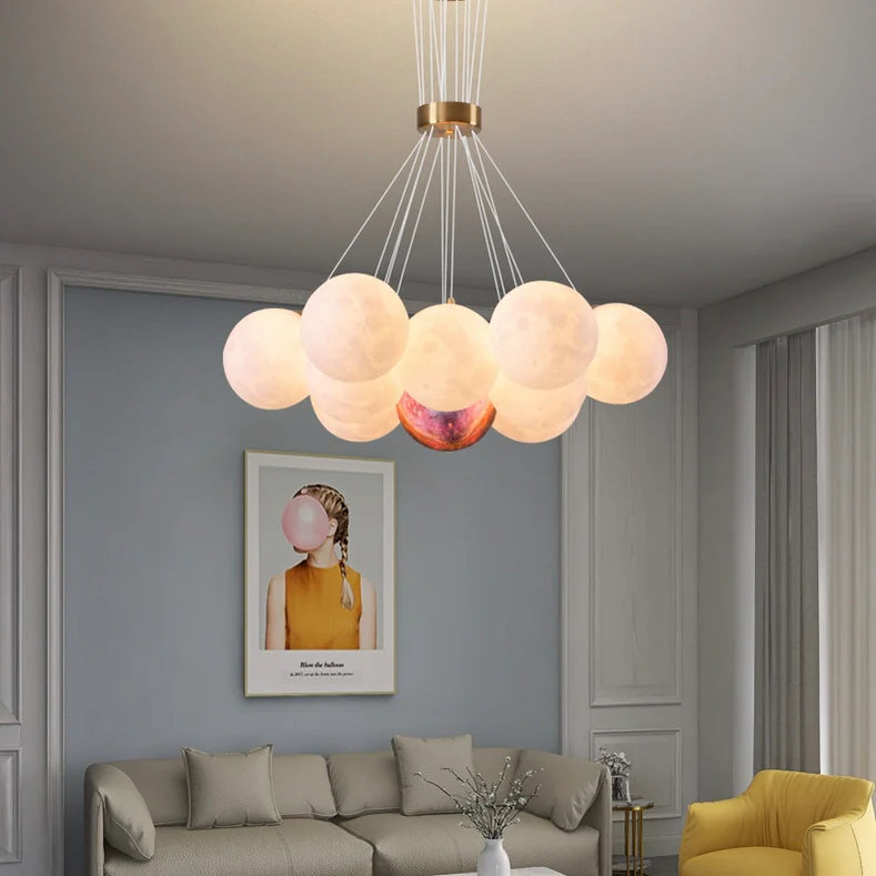 Bubble Moon Chandelier Bedroom Ceiling Light Modern Nordic Lamp