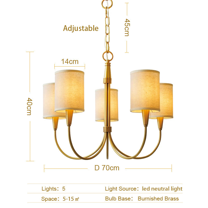 Brass Chandelier|Mid Century Ceiling Fixtures Light|Fabric Shades Adjustable Chain Pendant
