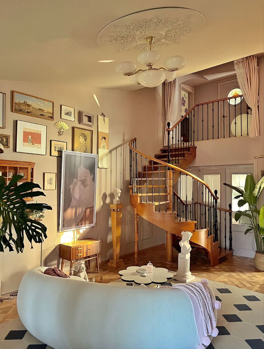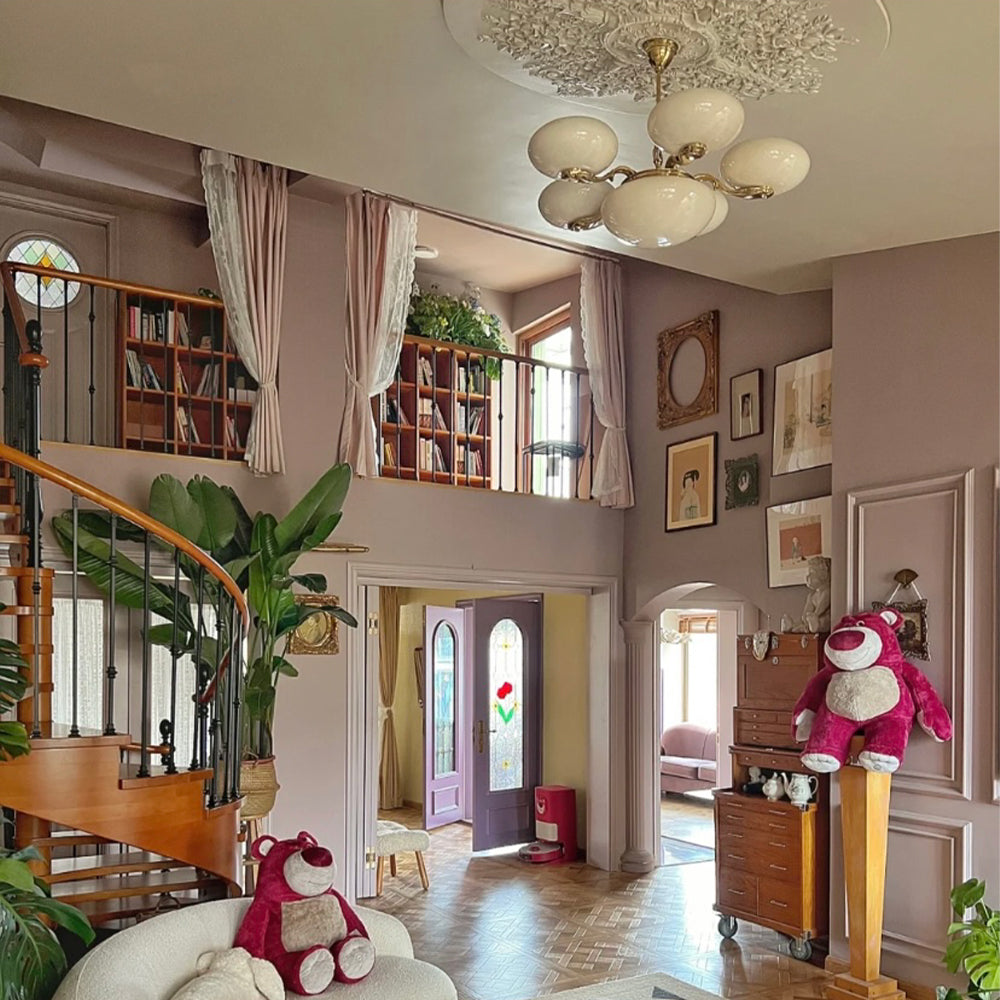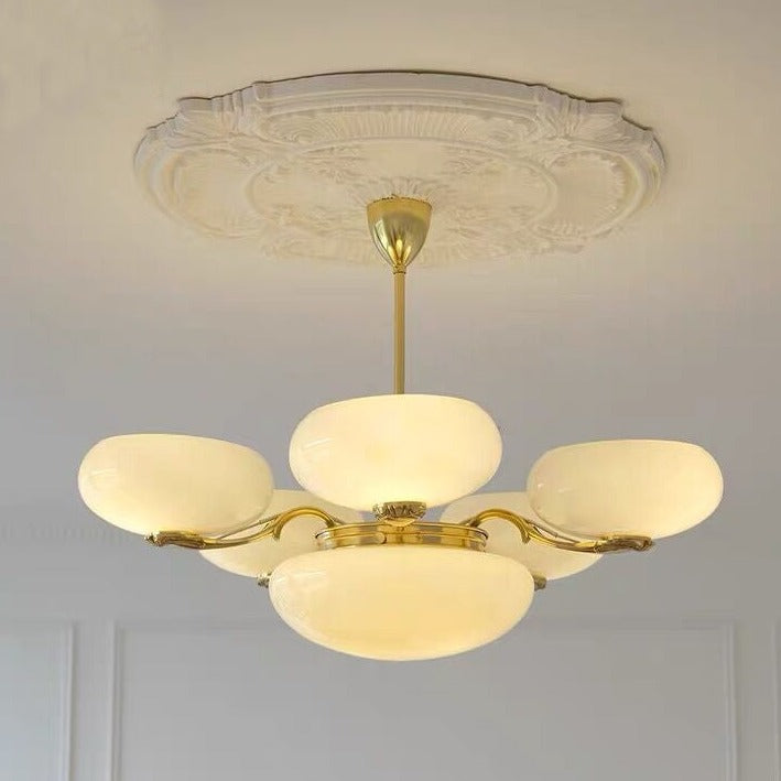 This opulent chandelier is a perfect blend of American vintage and French elegance. Featuring a creamy white oval shade and brass vintage arms, this extremely creative and elegant chandelier is perfect for adding an elegant touch to your home decor. It creates an exquisitely sophisticated atmosphere that is sure to impress your guests.