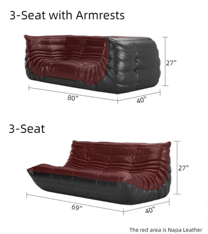 Classic Italian Style Caterpillar Napa Leather Sofa
