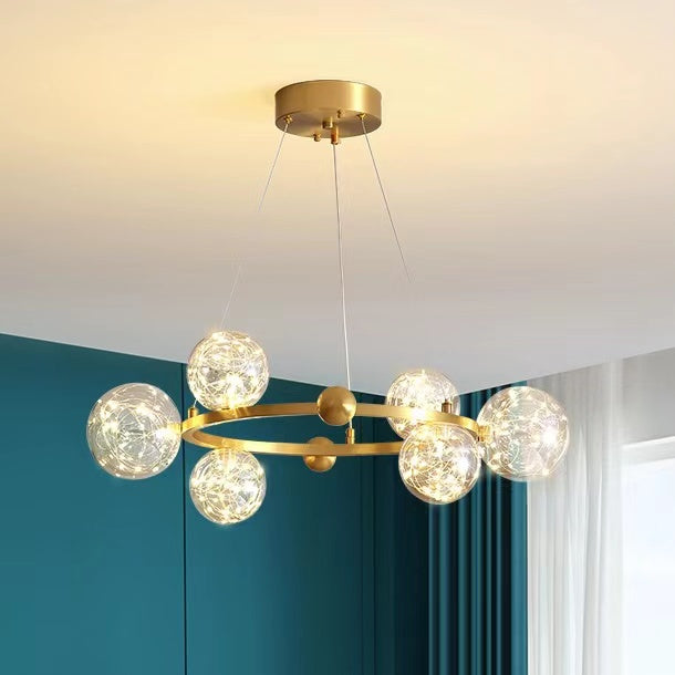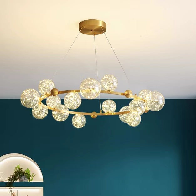 Clear Glass Globes Chandeliers For High Ceilings Ring Wheel For Dining Room Or Bedroom