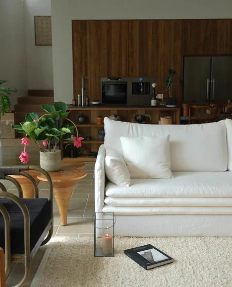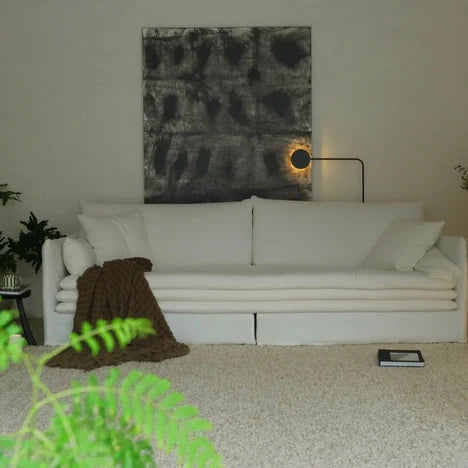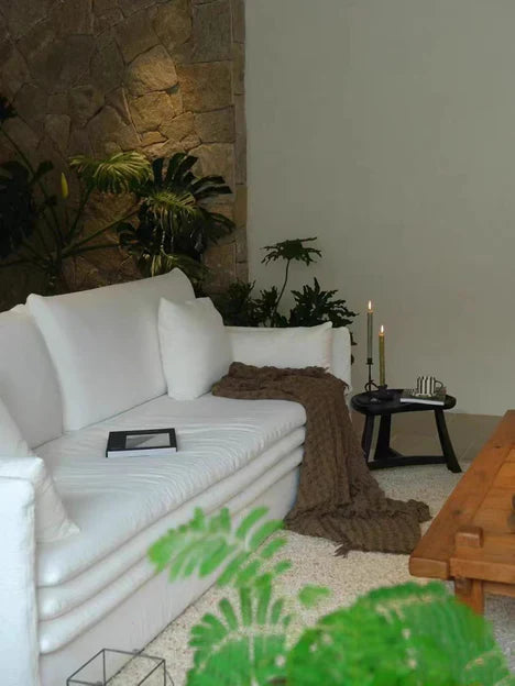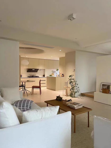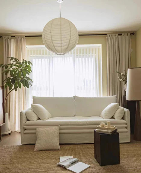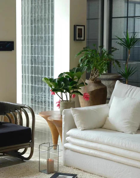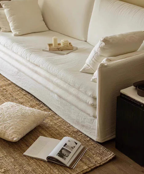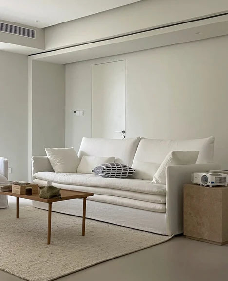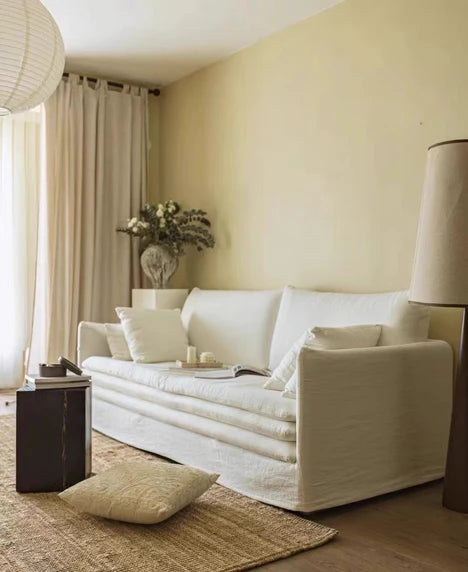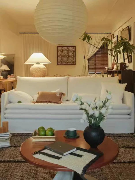 Cotton Linen Fabric Removable Washable Cream White Sofa Living Room Wabi-Sabi Style
