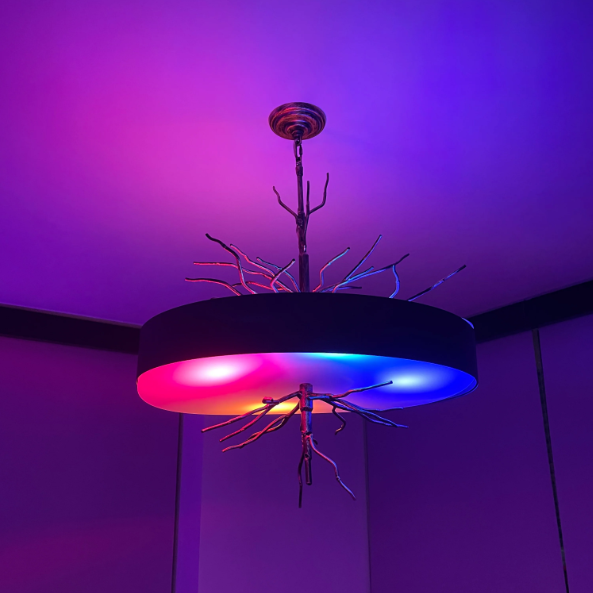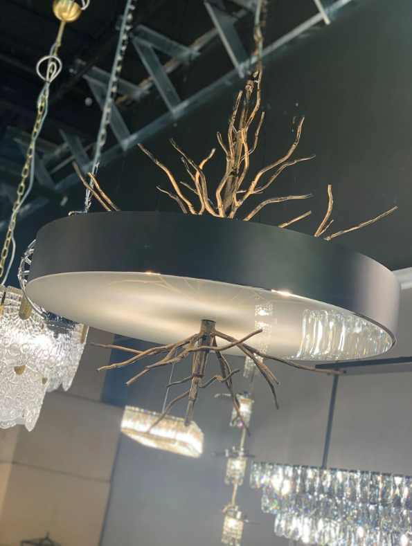 This creative chandelier is made of copper and glass material.It makes the brass branches very realistic,extendinng upward through the drum-shaped glass shade,and the light illuminates to display a luxurious and exquisite atmosphere.Perfect for installation in living room,dining room,home office,coffee shops,etc.