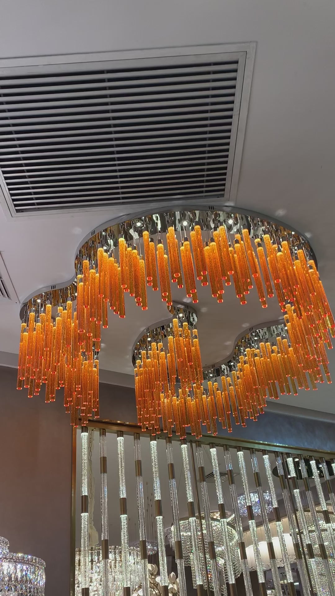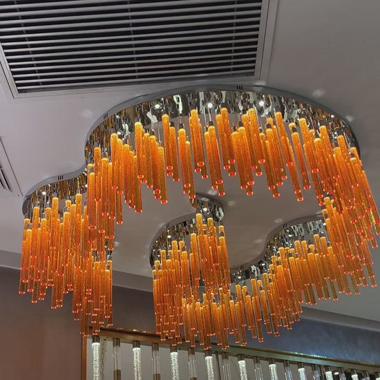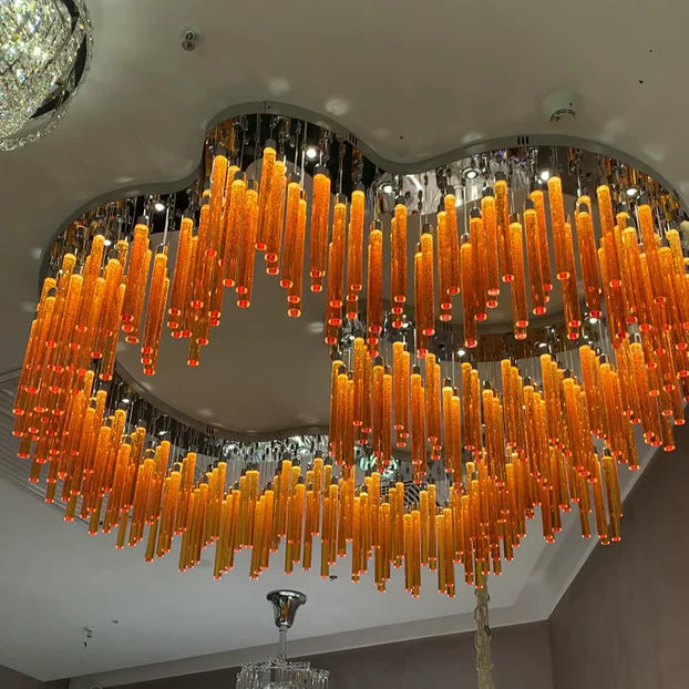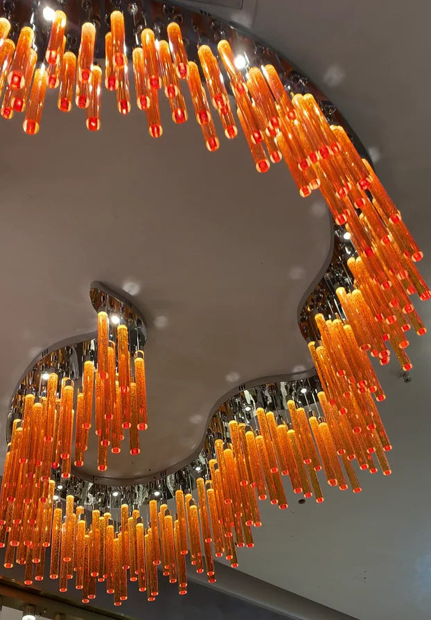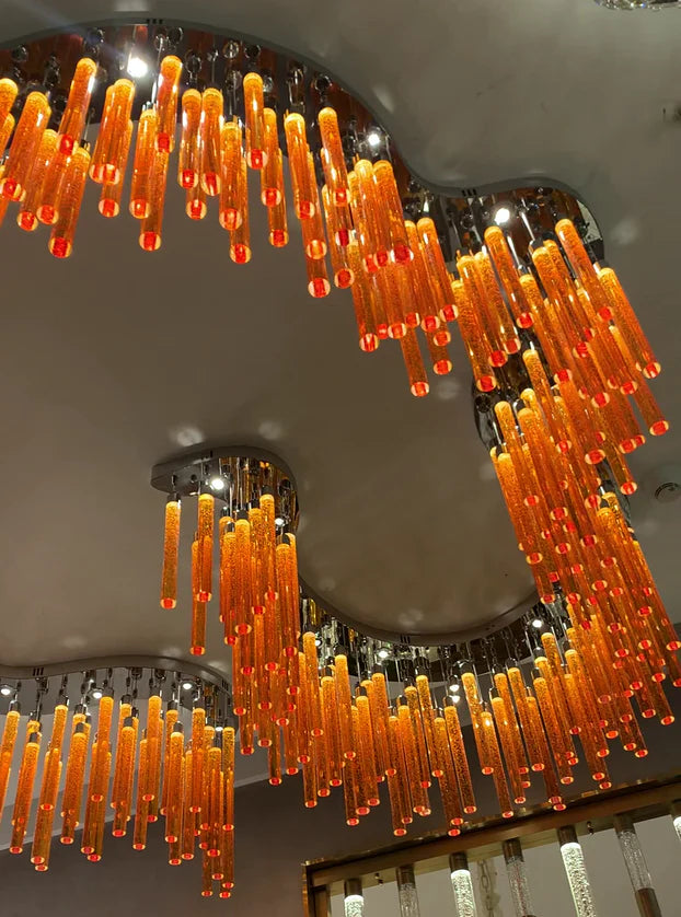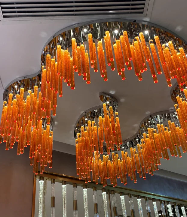 Creative Irregular Floating Orange Crystal Cylinder Chandelier for Living Room/Hotel/Restaurant