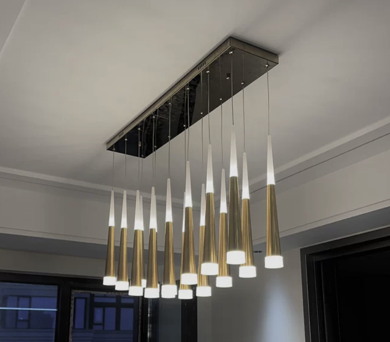 chandelier,chandeliers,pendant,pendants,ceiling,flush mount,aluminum,gold,red,colorful,glass,rectangle,dining room,dining table,big table,long table,bar,kitchen island,kitchen bar,dining bar,coffee table