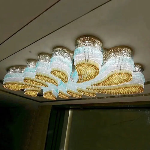 Custom Extra Large Flush Mount Floral Crystal Chandelier for Hotel/Restaurant/Villa