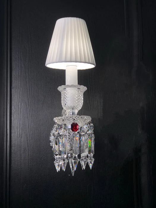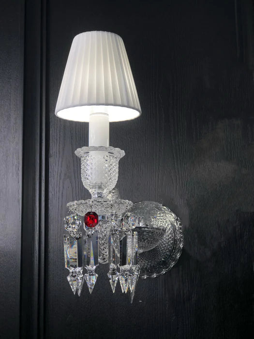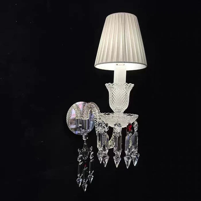 Customized Luxury 1-Light Crystal Wall Light with White Lampshade