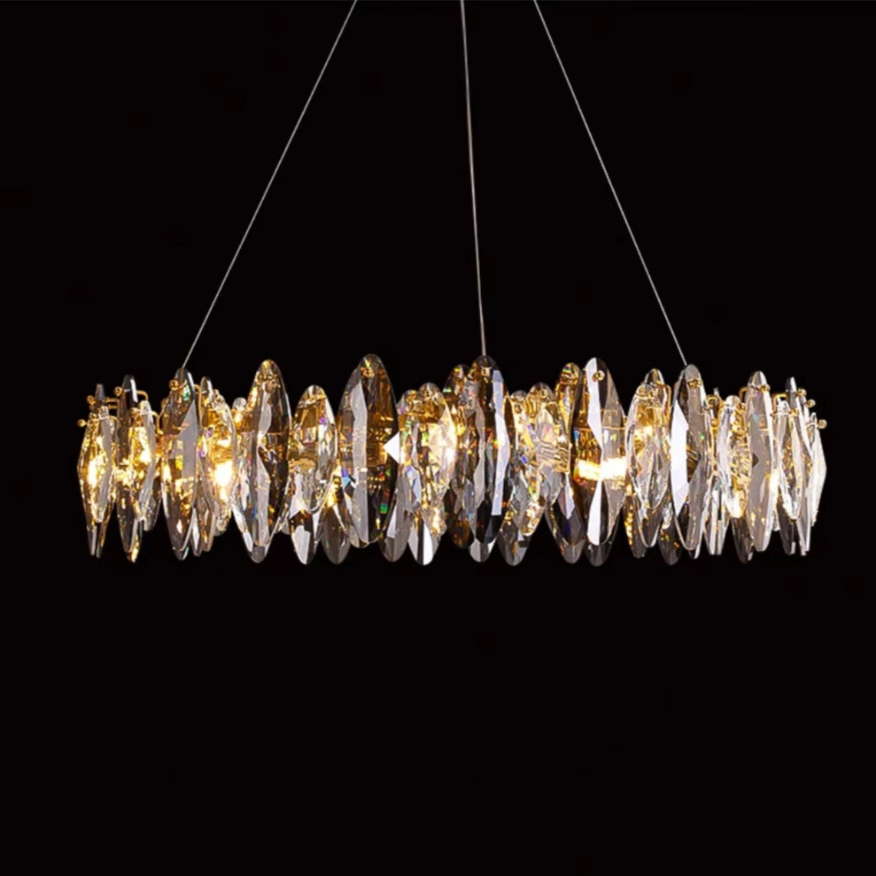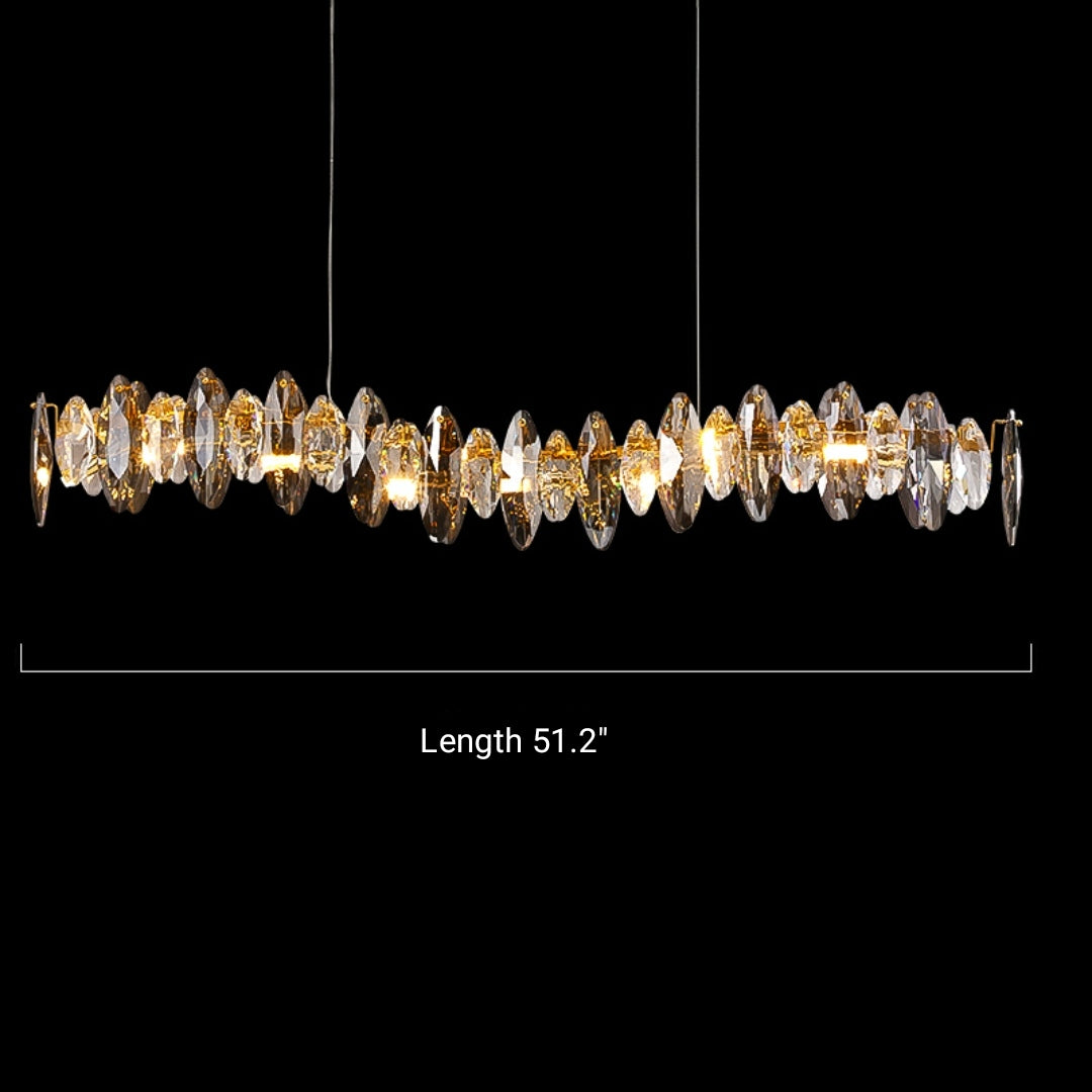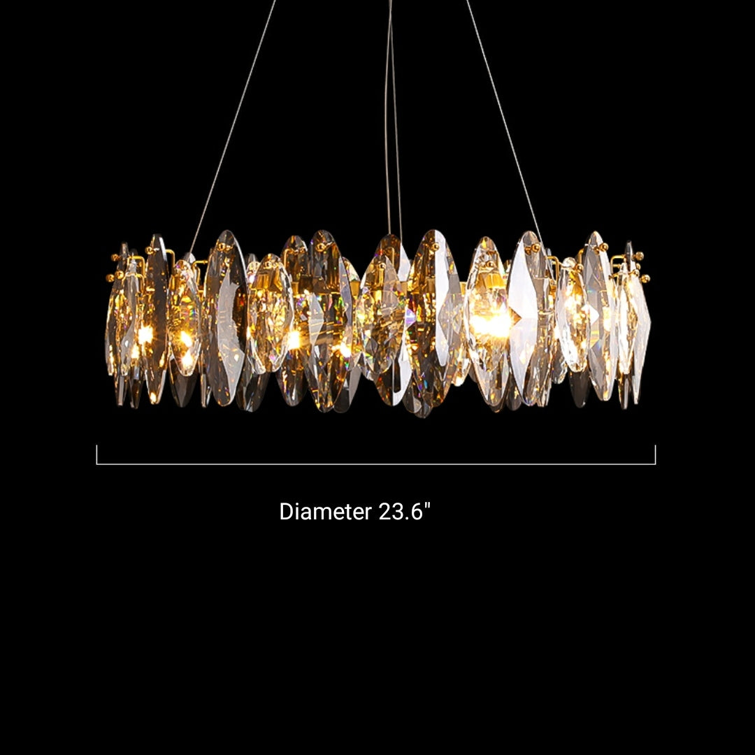 The whole light body is made of K9 crystal and metal. It is designed into a luxury modern style. It is absolutely stunning no matter light turns on or not.