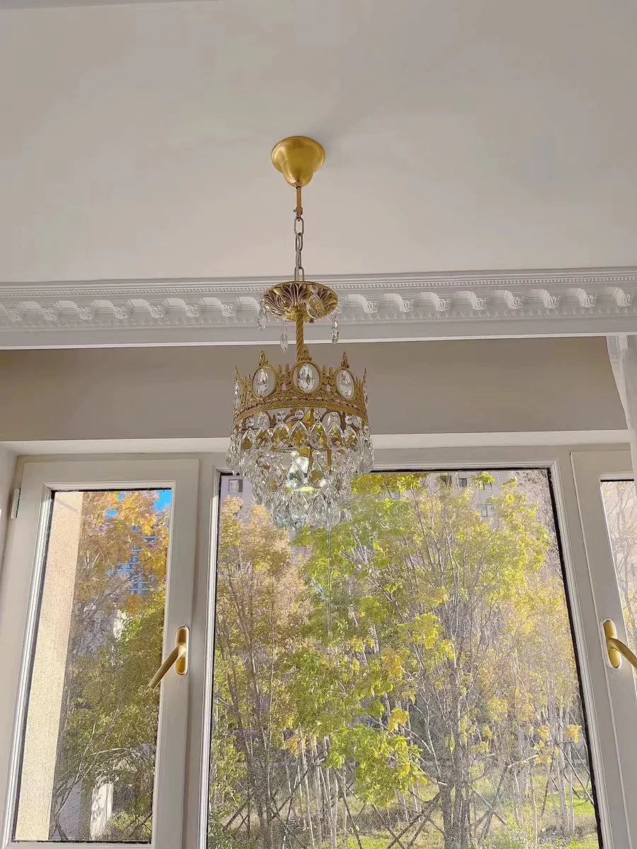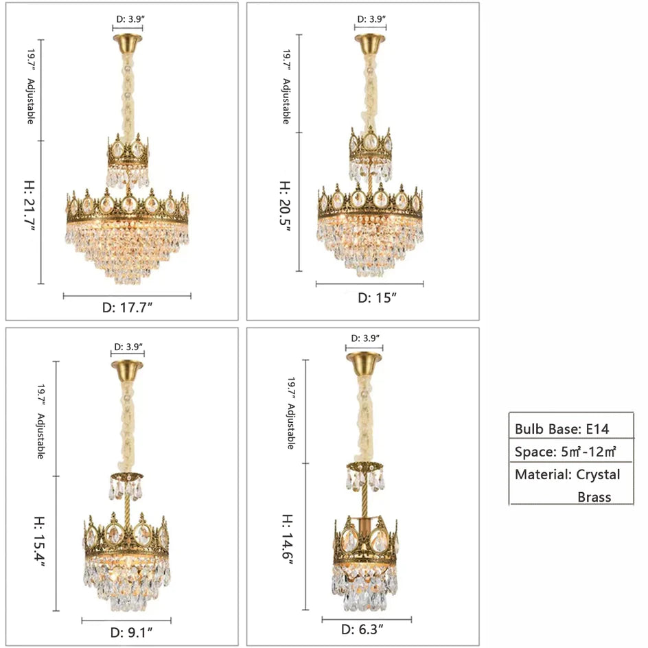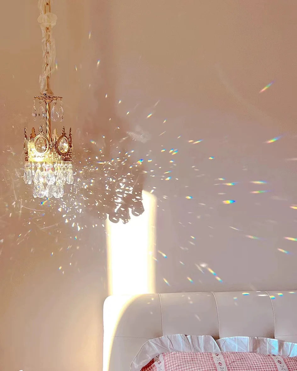 The body of this chandelier is made of high quality brass and crystal materials. The golden crown frame is adorned with layers of crystal pendant beads that refract light in different directions, creating a dazzling and wonderful effect. The brass finish matches perfectly with the crystal accents and is full of fairy-tale romance. Whether the lamp is turned on or not, it is absolutely stunning as a home decor piece. Perfect for girl's bedroom,foyer, entryway, hallway,etc.