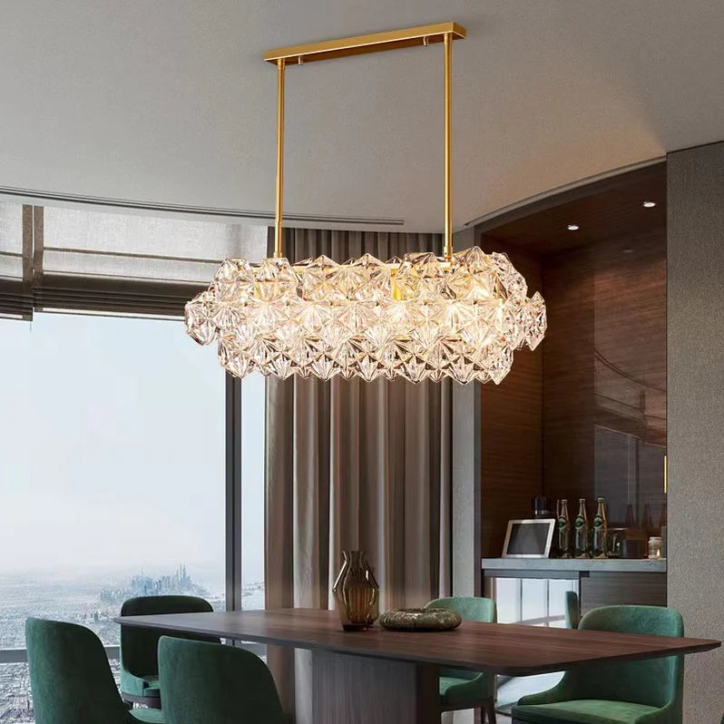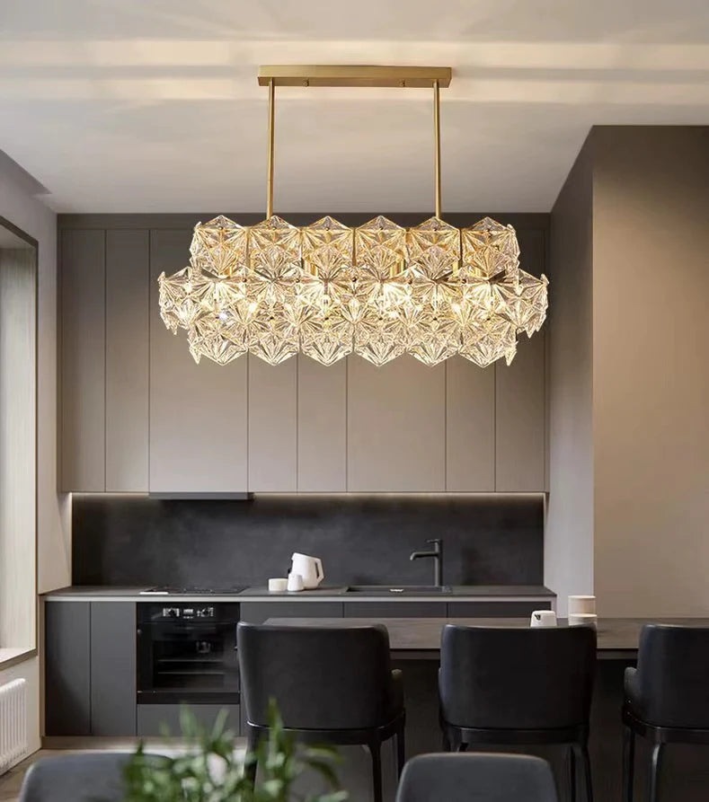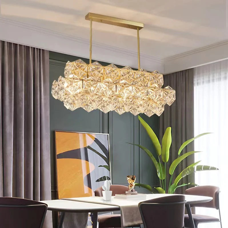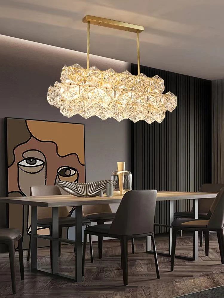 Modern Rectangle Crystal Pendant Chandelier for Dining Table/Kitchen Island/Bar