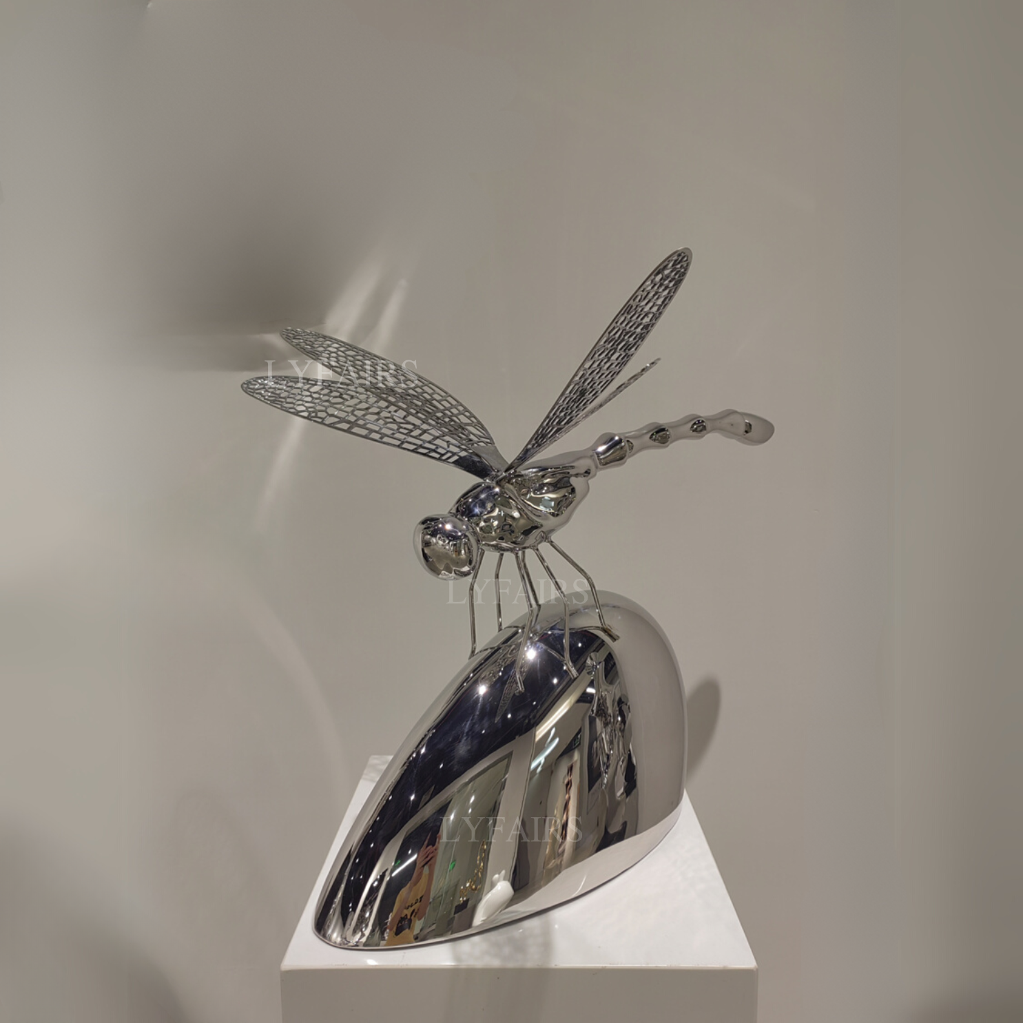 Dragonfly Rests on Stone Crafted in Premium Stainless Steel Sculpture