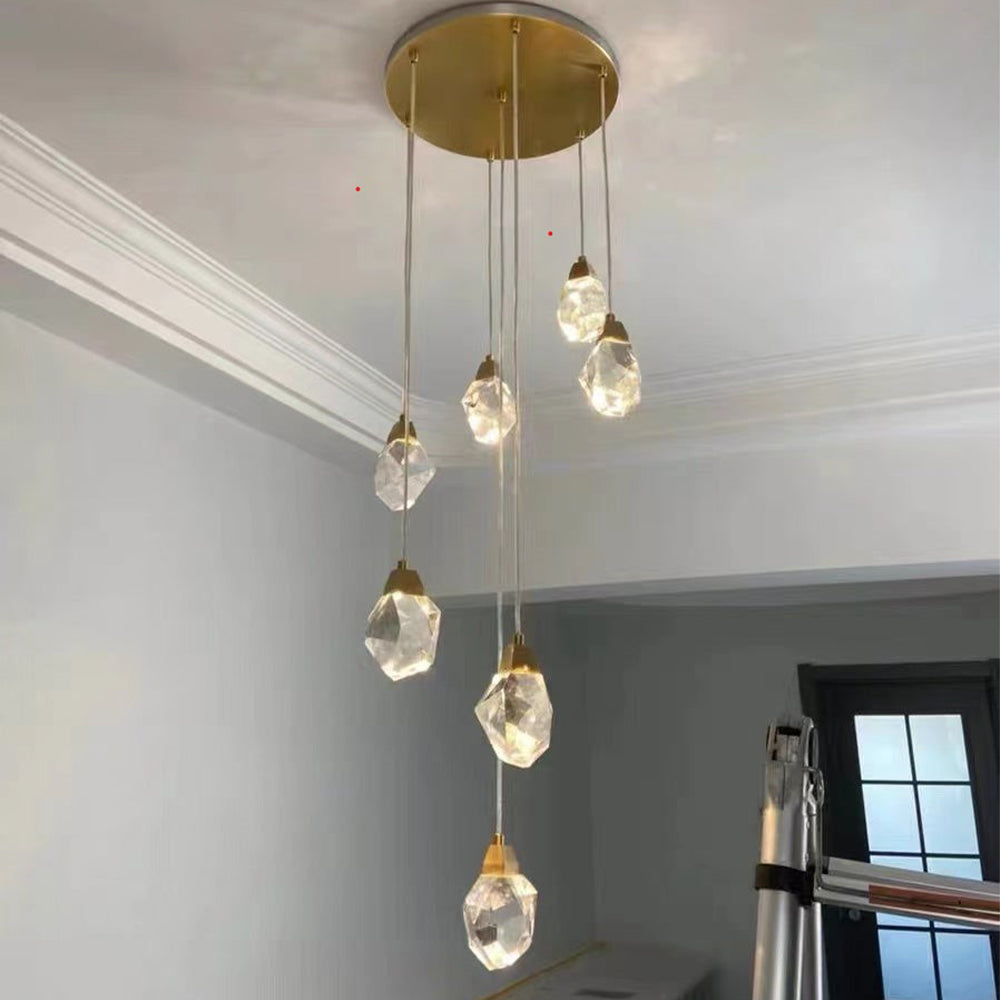 Duplex Hall Chandelier Foyer Living Room Droplight Modern Crystal Ceiling Lamp Hall Decoration Lights
