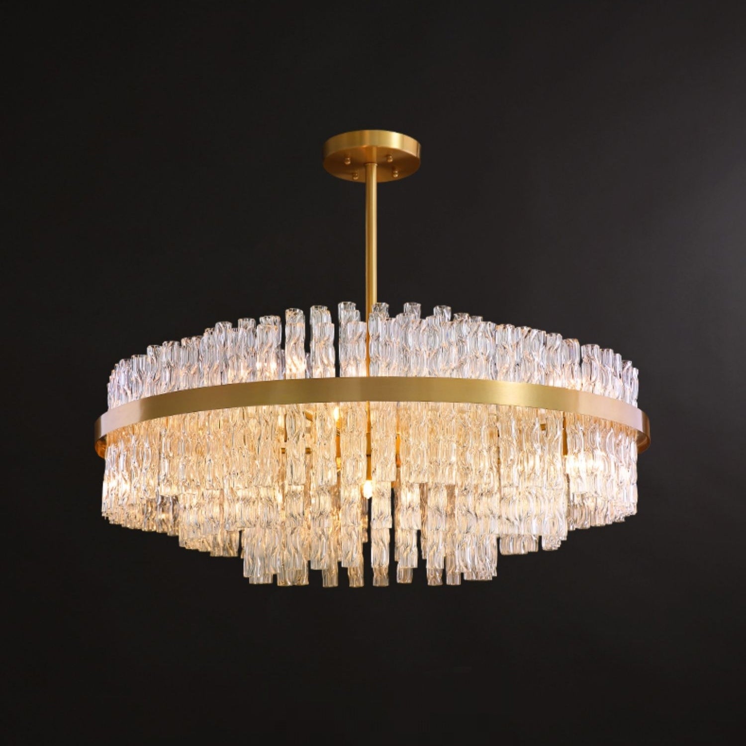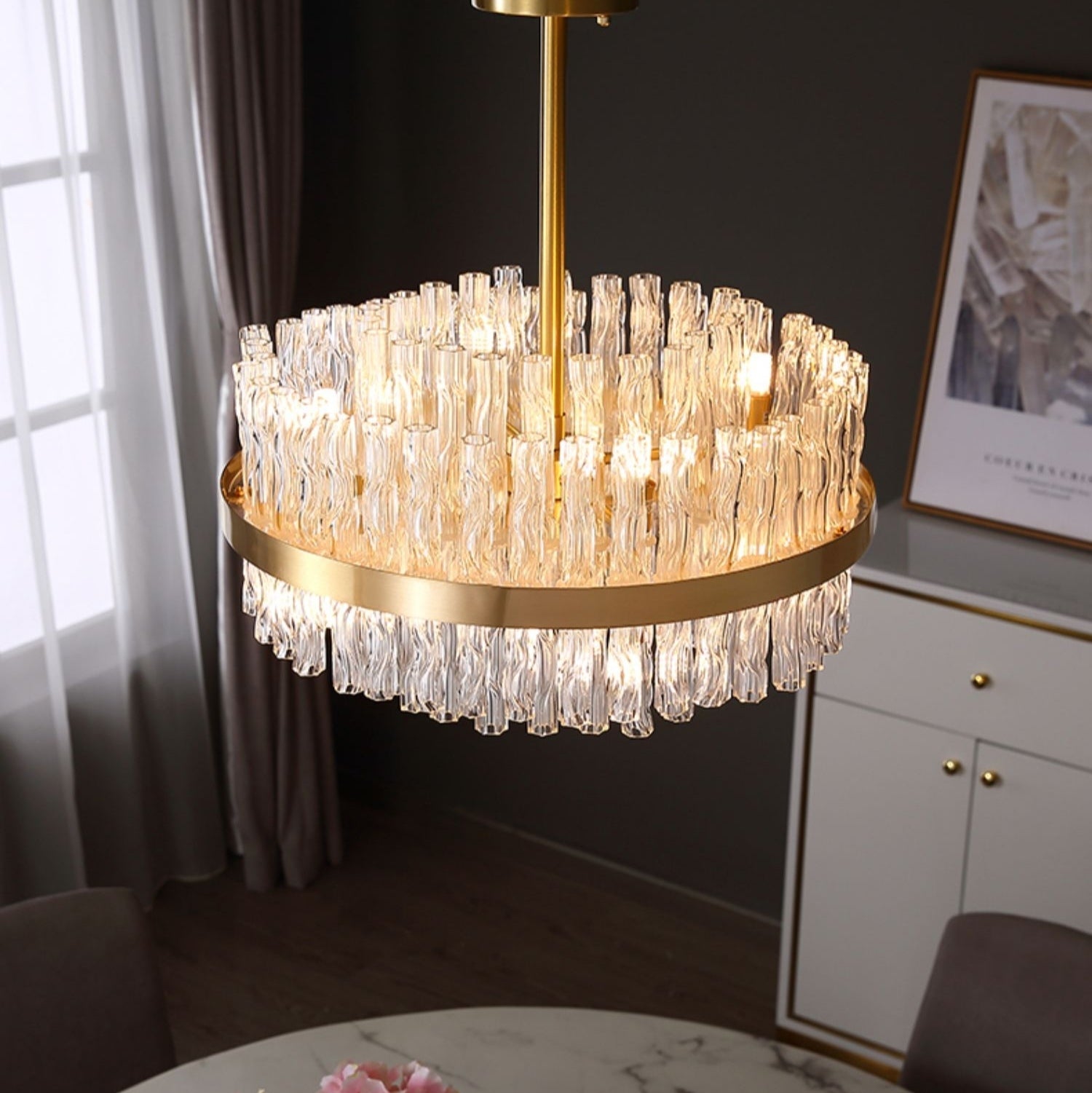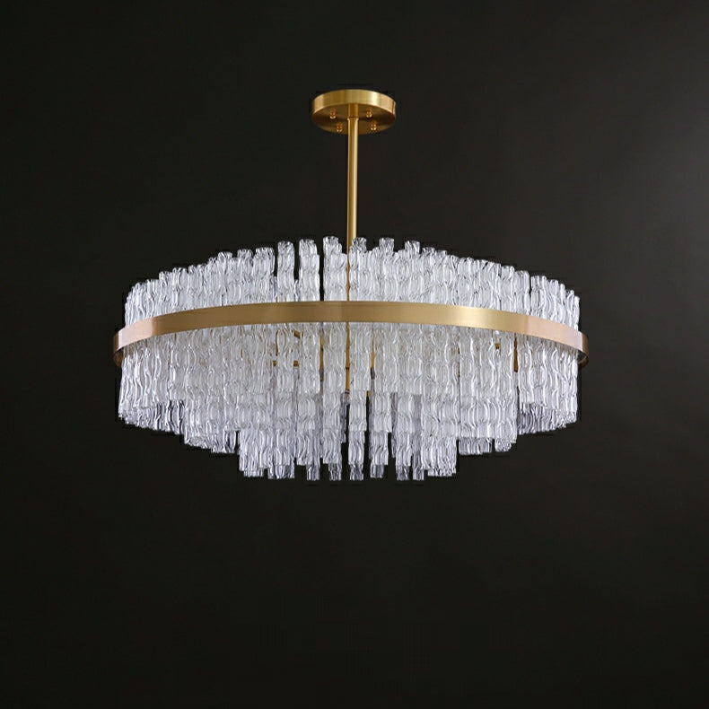 Elegant Brass Crystal Wave Tube Chandelier For Living Room Pure Copper Round Dining Table Ceiling Light/ Lamp