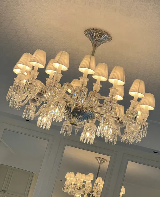 Elegant Crystal Chandelier Ceiling Light for Living Room Dining Room Fabric Lampshade