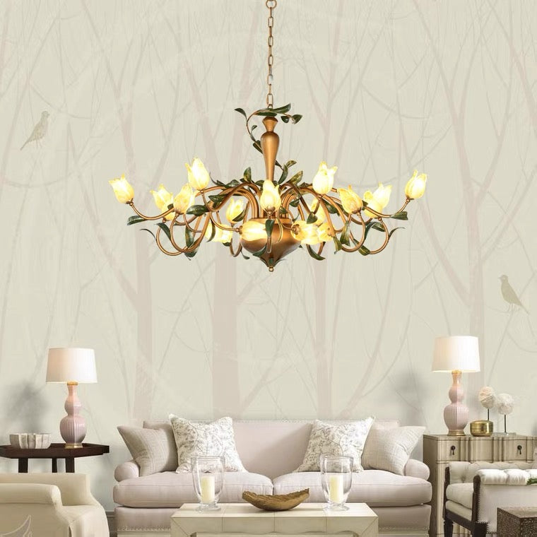 European Country Style Creative Beautiful Vintage Tulip Flower Chandelier for Dining Room Bedroom Living Room Kids Room