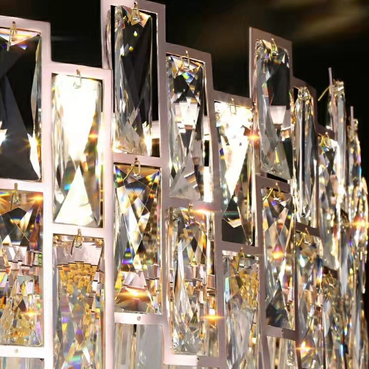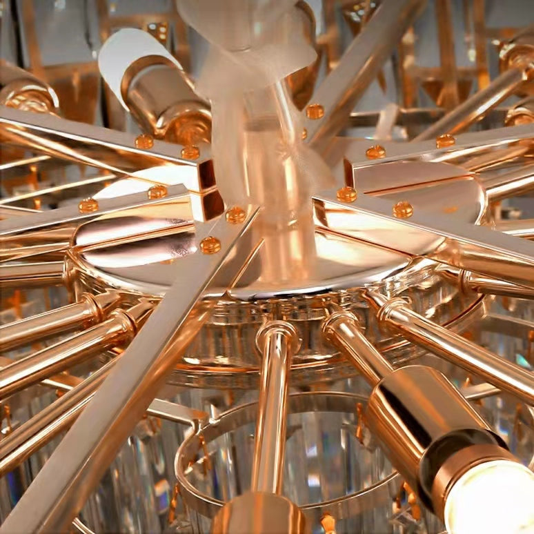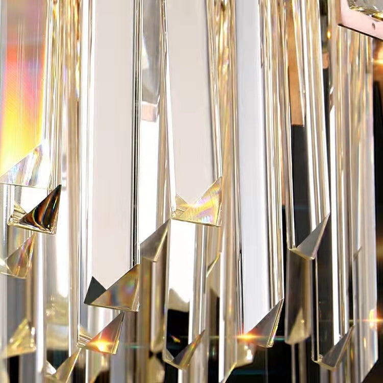 The whole light body is made of high quality crystal. It is designed into an artistic modern style. It is absolutely romantic and stunning no matter light turns on or not.