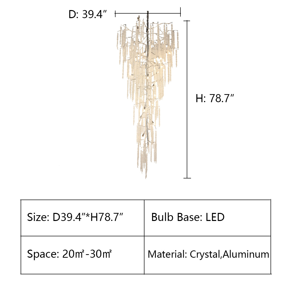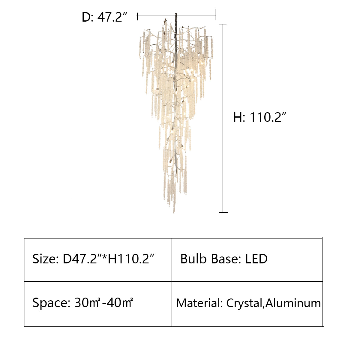 Extra Large Branch Wheat Crystal Pendant Long Chandelier for Living Room/Foyer/Staircase