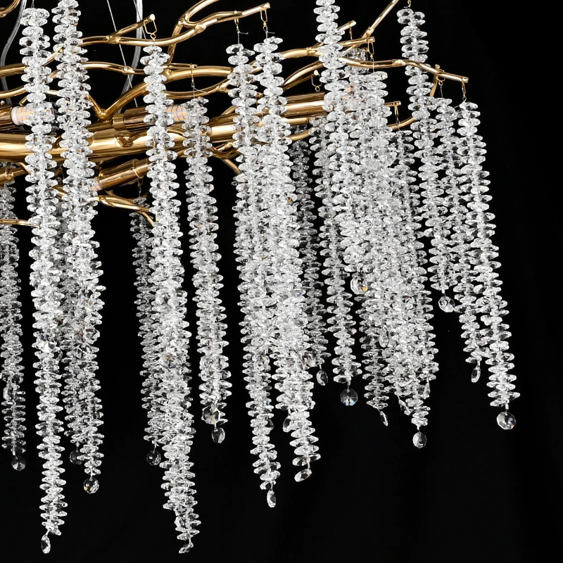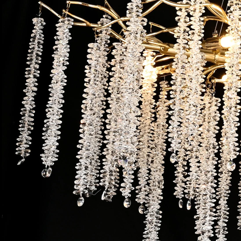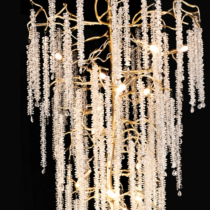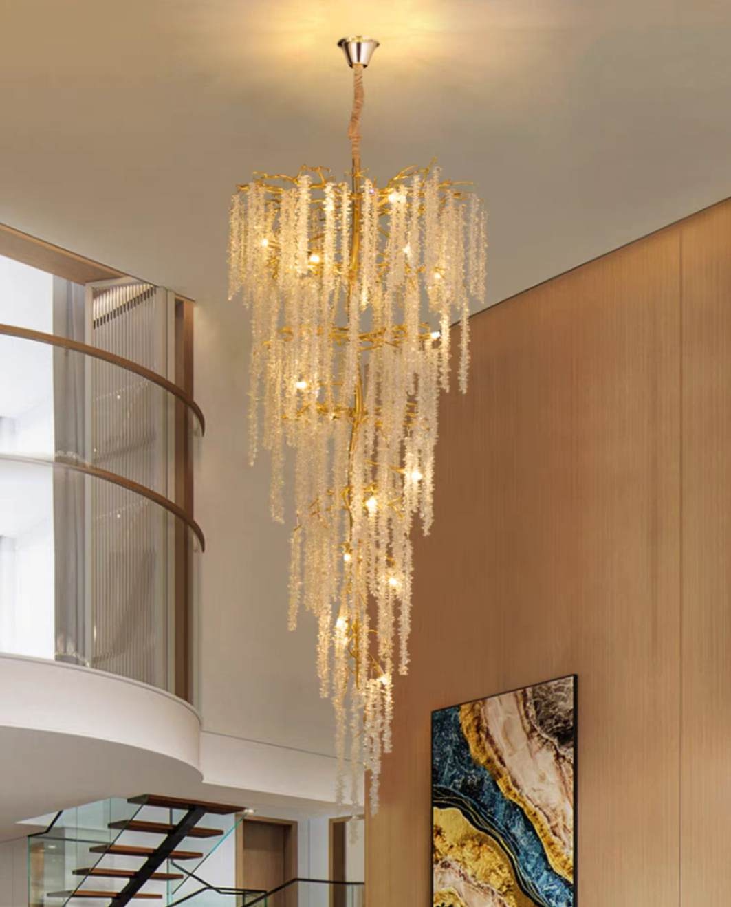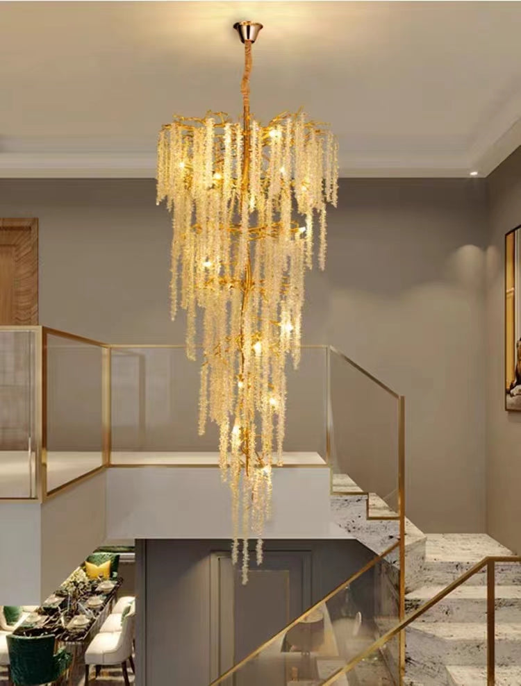 This extra large chandelier is made of high quality crystal and aluminium material.The pendant light are designed as a branch with blossoms, Shining and luxury, a symbol of harvest(Love, career, family, friendship). This hanging light is perfect for dining room, living room, kitchen island, bedroom and other places . It is absolutely stunning whether the light is on or off.Perfect for installation in living room,foyer,hotel lobby,etc.