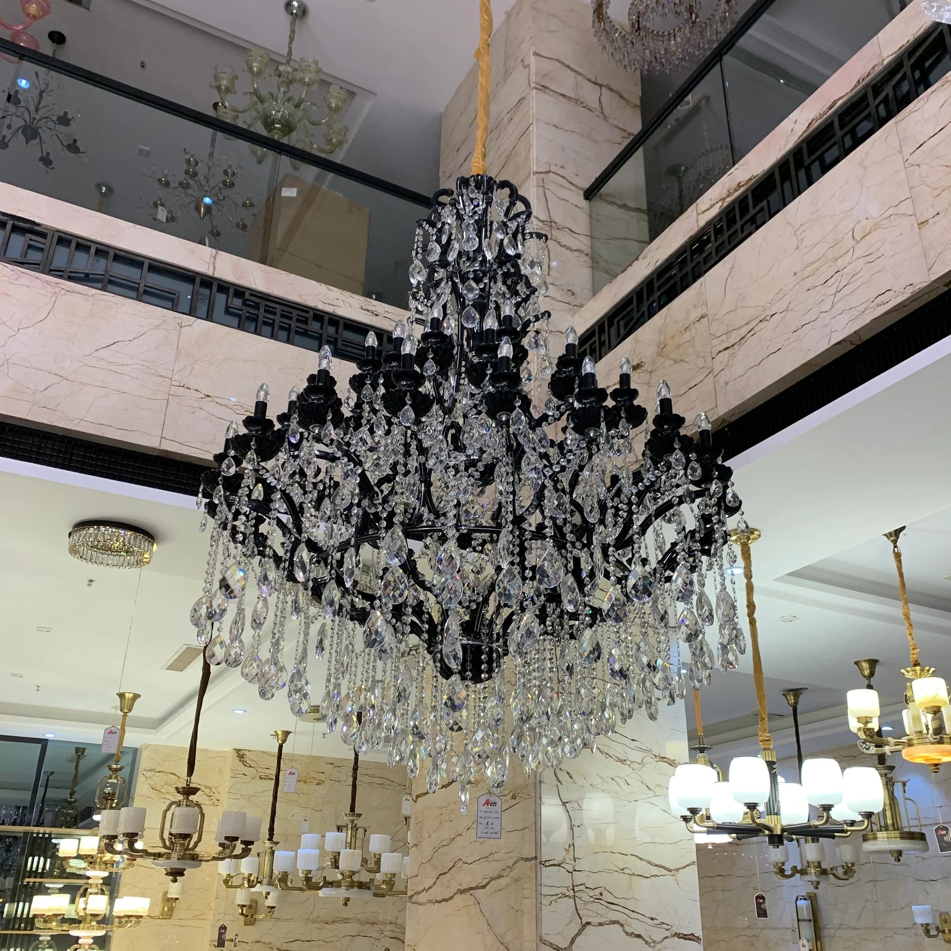 Extra Large Crystal Candle Chandelier in Black Finish for Living Room/Foyer/Staircase/Hotel