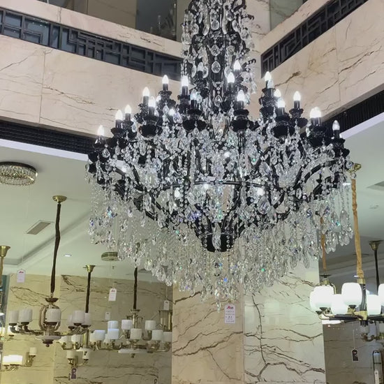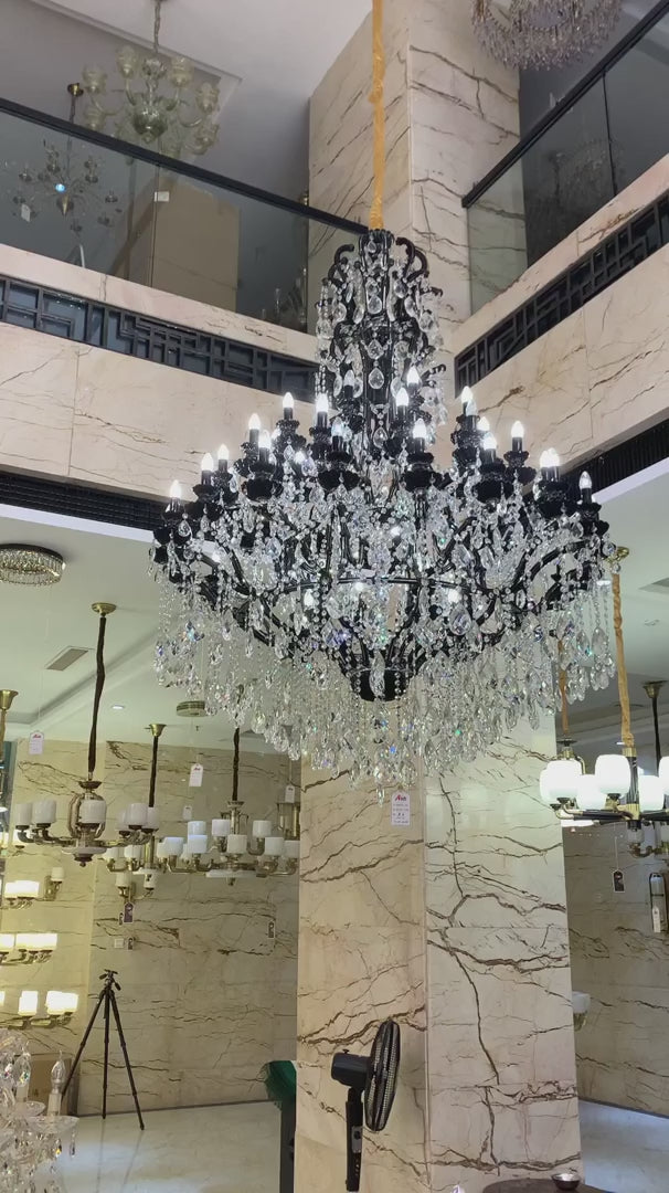 Elevate your space with our Extra Large Crystal Candle Chandelier. Featuring a mysterious black finish and oversized design, this elegant chandelier is perfect for luxurious living rooms, foyers, staircases, and hotels. Its grand size and sleek black color exude sophistication and style.