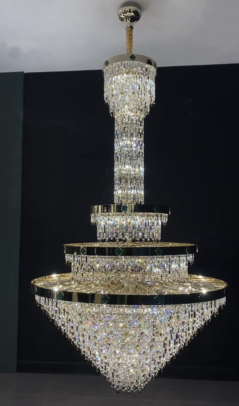 Extra Large New 3-layers Conical Creative Crystal Chandelier For High-ceiling Foyer/Hallway/Entryway