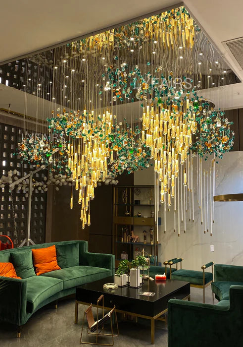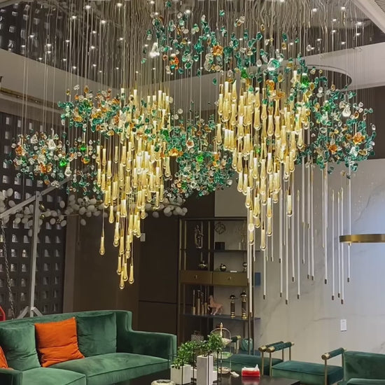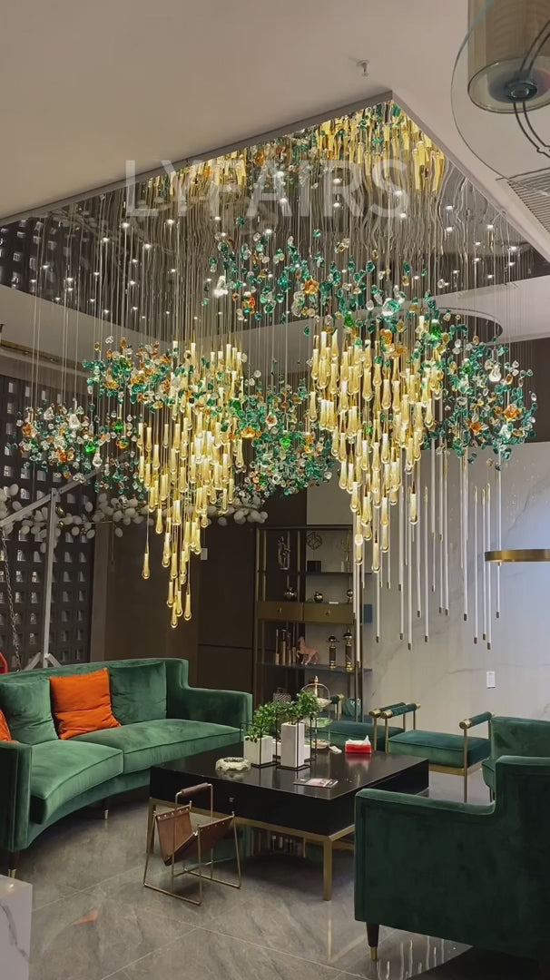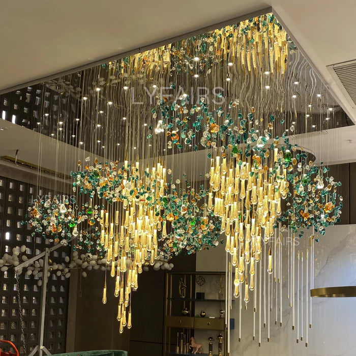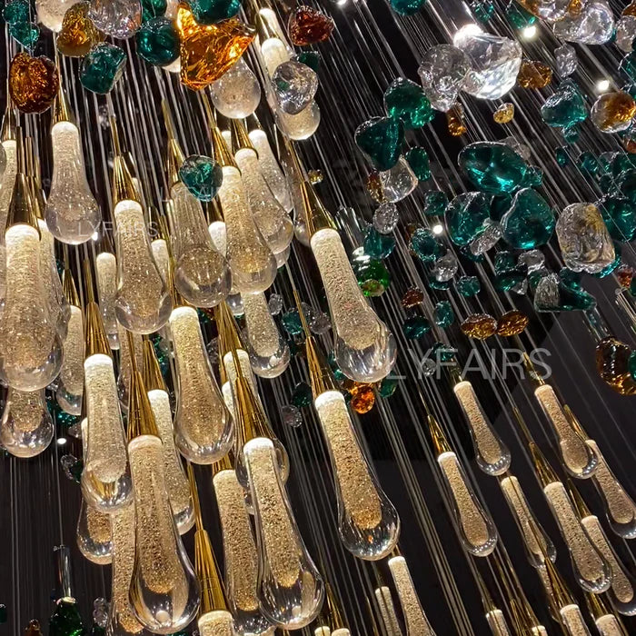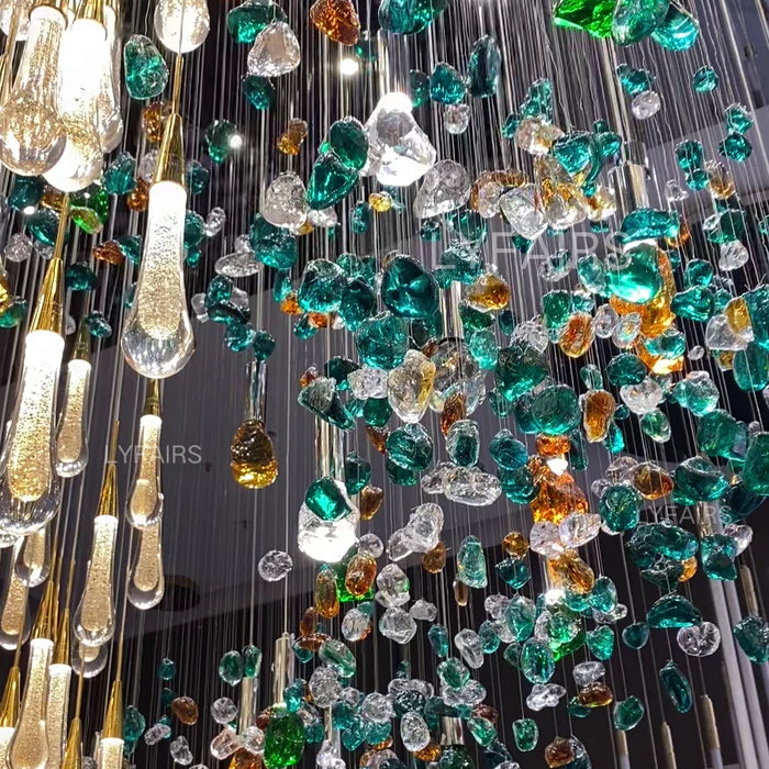 Extra Large Floating Crystal Raindrop Colorful Stone Chandelier for Hotel/Restaurant/Villa