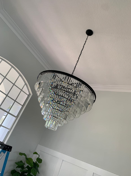 This chandelier is made of high quality crystal material.It is characerised by being designed in a classic circular shape,with multiple layers of crystals intersecting in sequence for a luxurious feel.Like a shiny diamond hung from the ceiling.It is absolutely stunning whether the light is on or off.Perfect for installation in living room,dining room,bedroom,hallway,entryance,etc.