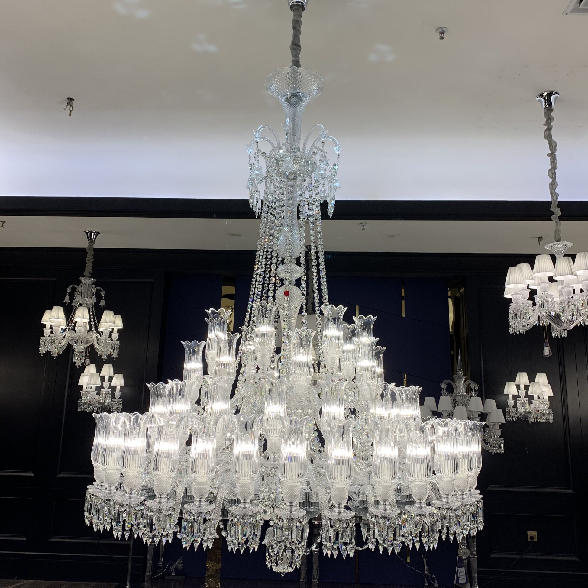 Extra Large French Multi-layer Flower Branch Crystal Chandelier Chrome Crystal Light for Foyer/Stairs/Hallway