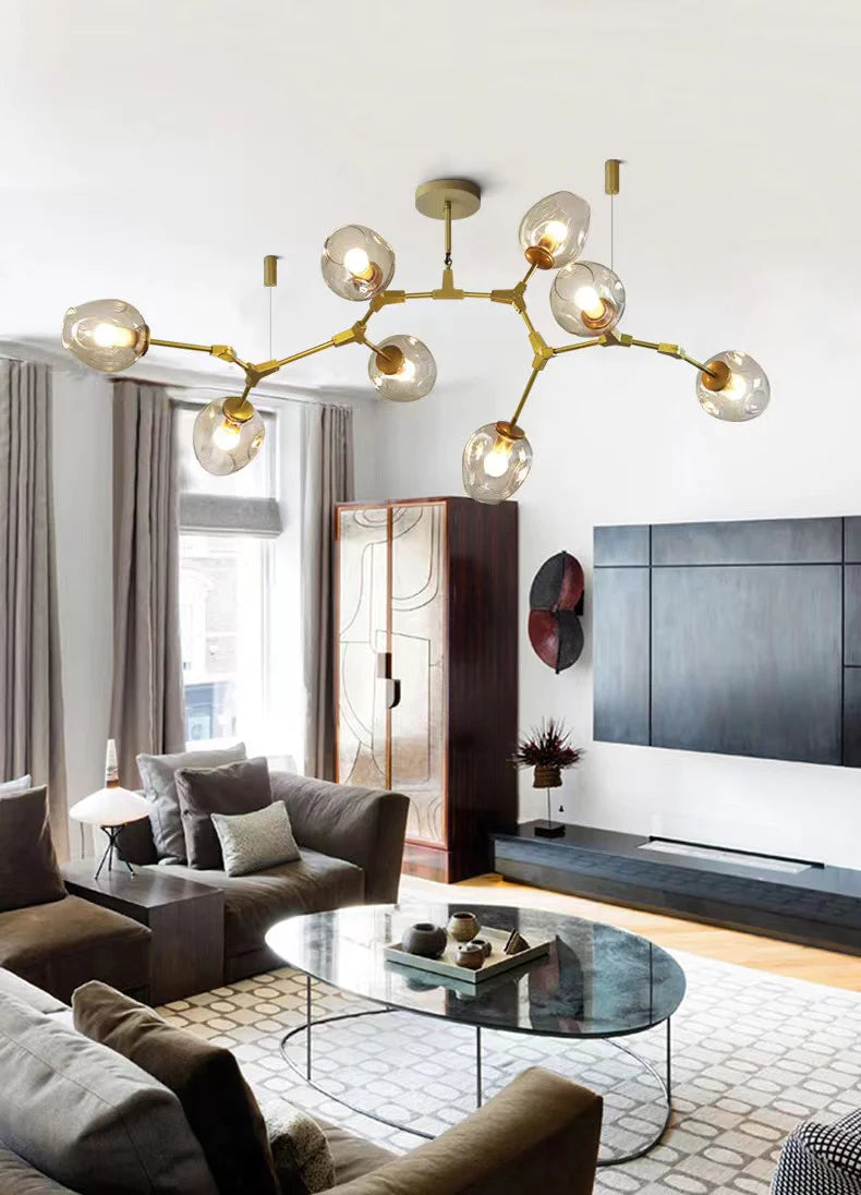 Extra Large Industrial Fashion Branch Multiple Glass Pendant Chandelier for Living/Dining Room