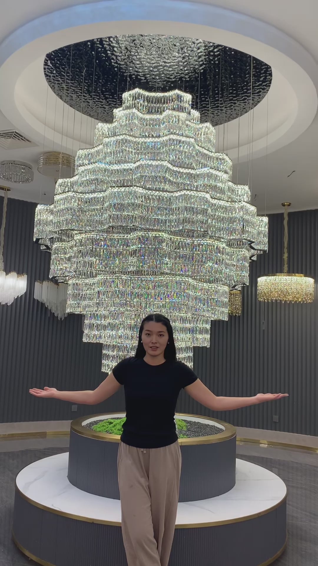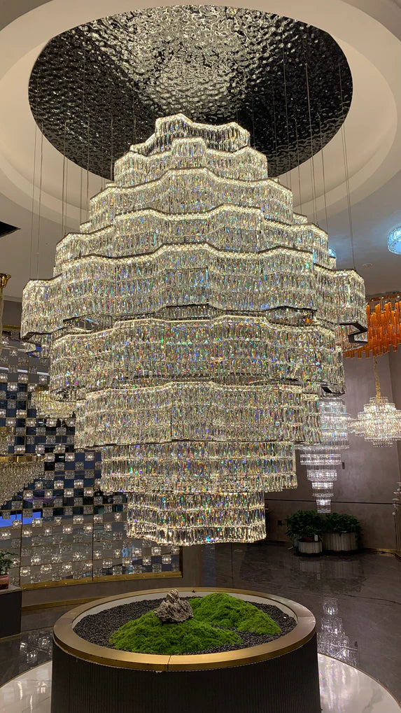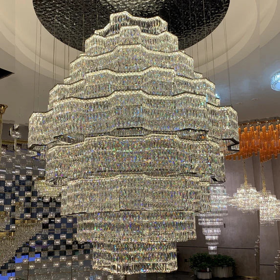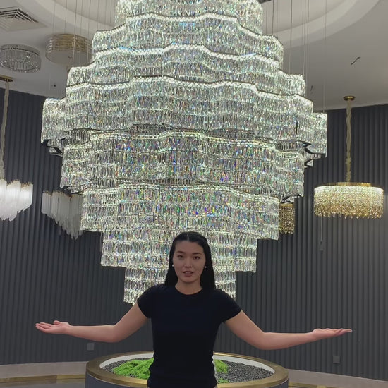 Extra Large Luxury Multi-layered Waving Chandelier in Chrome Finish Color