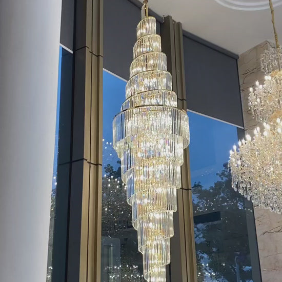 Extra Large Luxury Spiral Crystal Chandelier in Gold Finish