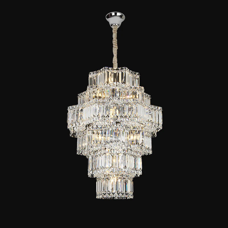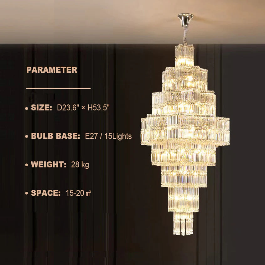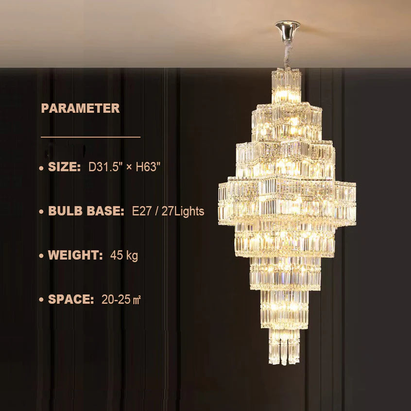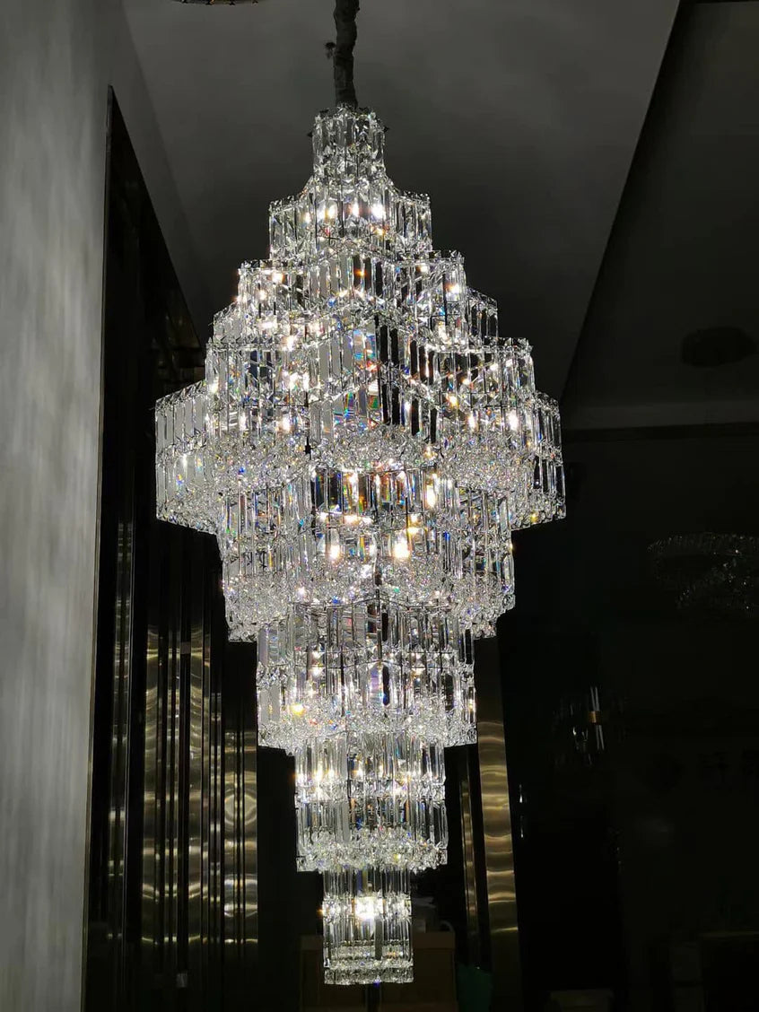 Extra Large Plaza Hall Multi-Tier Crystal Chandelier Foyer Living Room Staircase Ceiling Lighting Fixture In Chrome/ Silver Finish