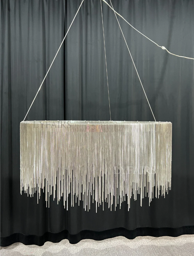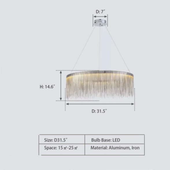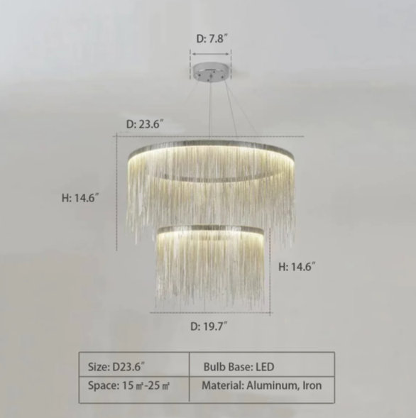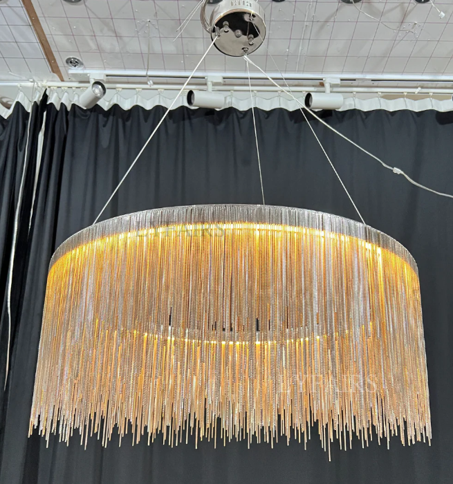 Extra Large Round Aluminum Tassel Chain Chandelier for Living/Dining Room/Villa/Duplex Hall