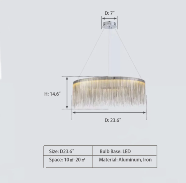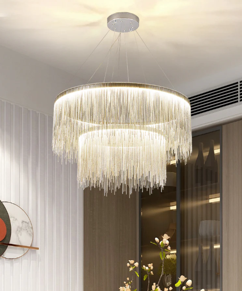 This artistic chandelier features a classic round design in the form of irregular tassel,which is made of aluminum.Modern light form with elegance and decency makes it a visual focal point in your home. Available in two types:one single layer or two-layer for free selection.Different sizes,ideal for an array of areas,from interior rooms to commercial areas.