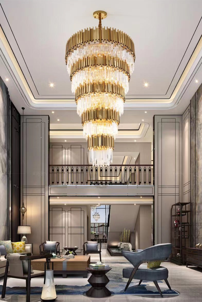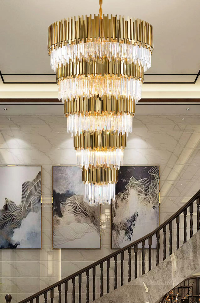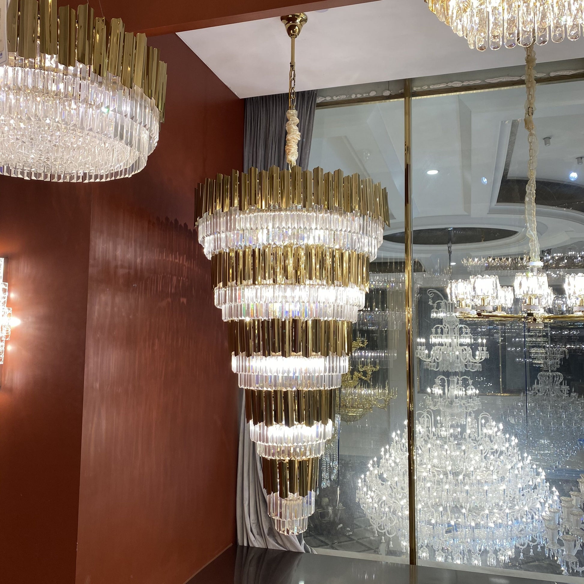 Extra Large Round Modern Luxury Gold Multi-tier Crystal Chandelier for Living Room/Stairs/Duplex Hall